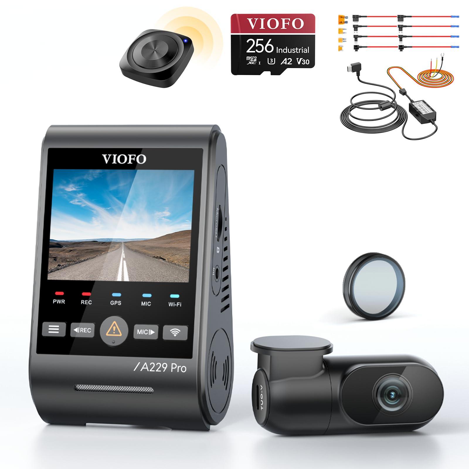 VIOFO Bundle: VIOFO A229 Pro 2CH + 256GB Card + Remote Control + Hardwire Kit with 8pcs Fuse Tap 4K HDR Dash Cam, Dual STARVIS 2 IMX678 IMX675, 4K+2K Front and Rear Car Camera, 2 Channel with HDR