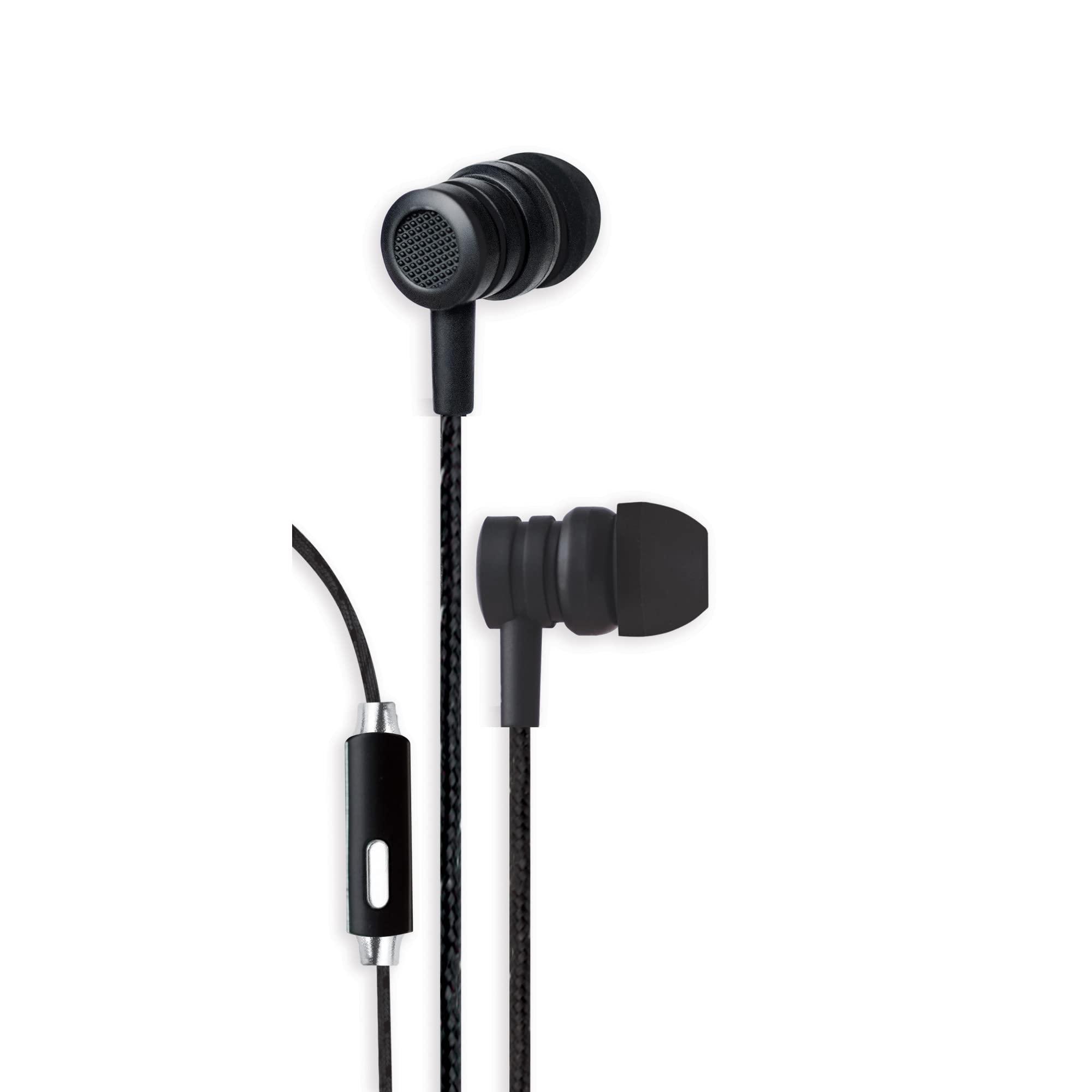 - These wired earbud headphones come in black for a stylish look.