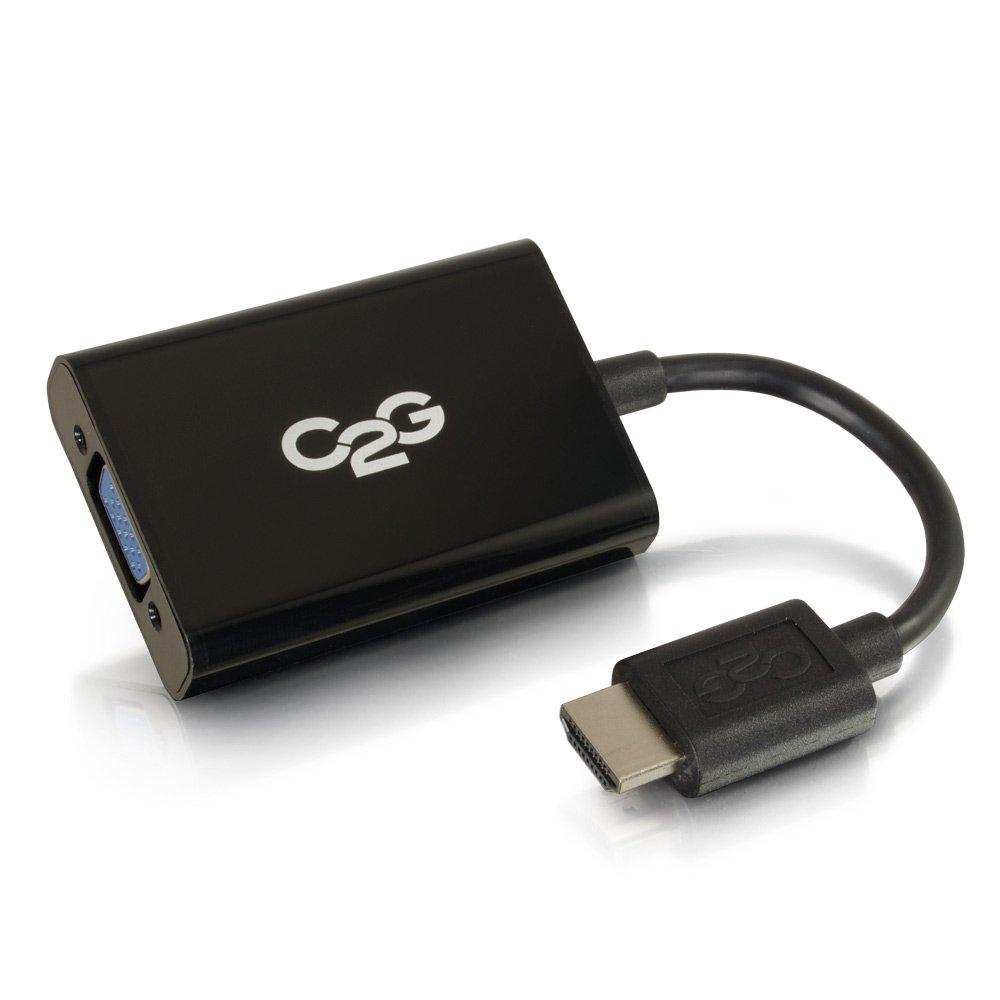 This adapter converter dongle is an ideal solution for connecting the audio/video output of a HDMI-enabled Chromebook or laptop to a VGA display and set of speakers. The dongle design of this adapter converter does not cause the stress on the port of a small laptop that is common when using a box style adapter. Up to a 1920x1080 video resolution is supported, allowing this adapter converter to meet the needs of a high performance application. Connect this adapter directly to the output of a laptop and use a VGA and Stereo Audio cable to connect to a display.