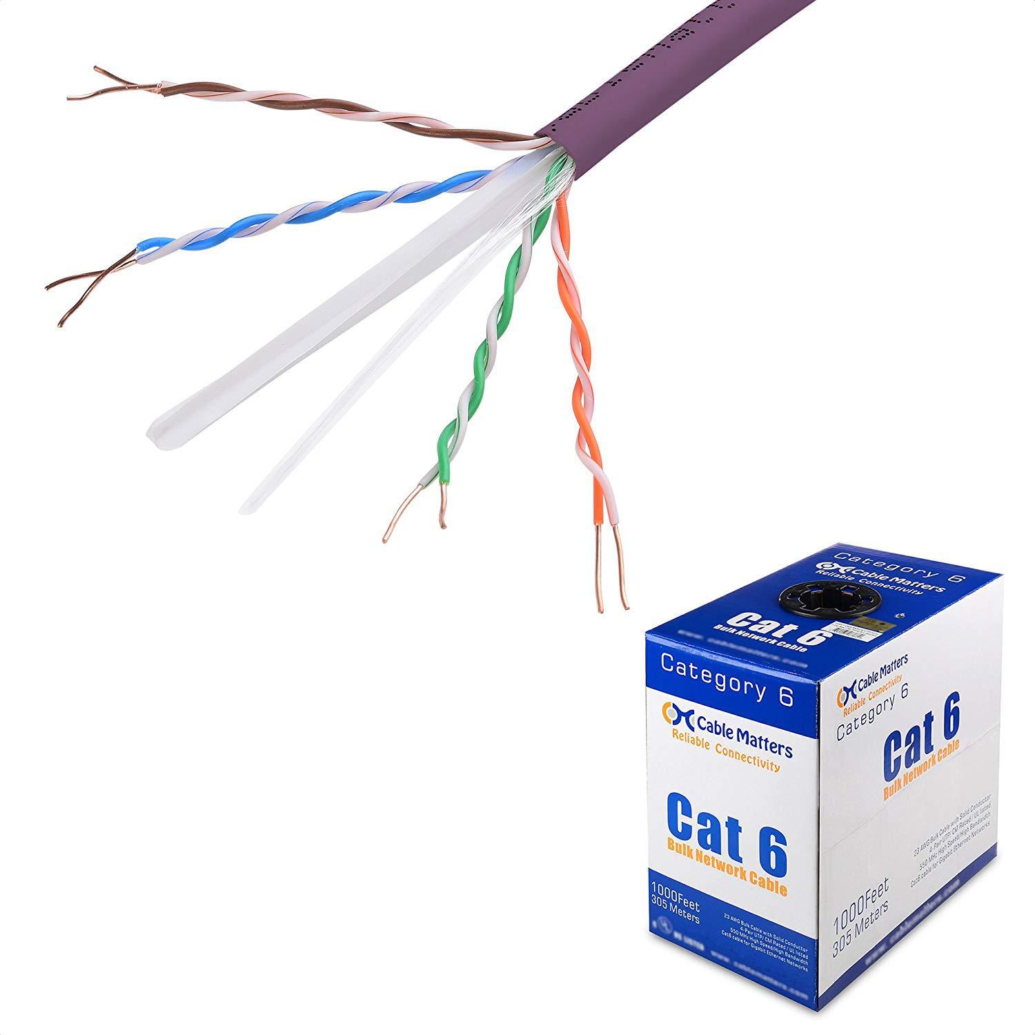 Cable Matters [UL Listed] 10Gbps in-Wall (CM) Rated 23AWG Bare Copper Cat 6 Cable 1000 ft (Cat6 Bulk Cable 1000 ft, Cat6 Ethernet Cable, Internet Cable, Network Cable) in Purple