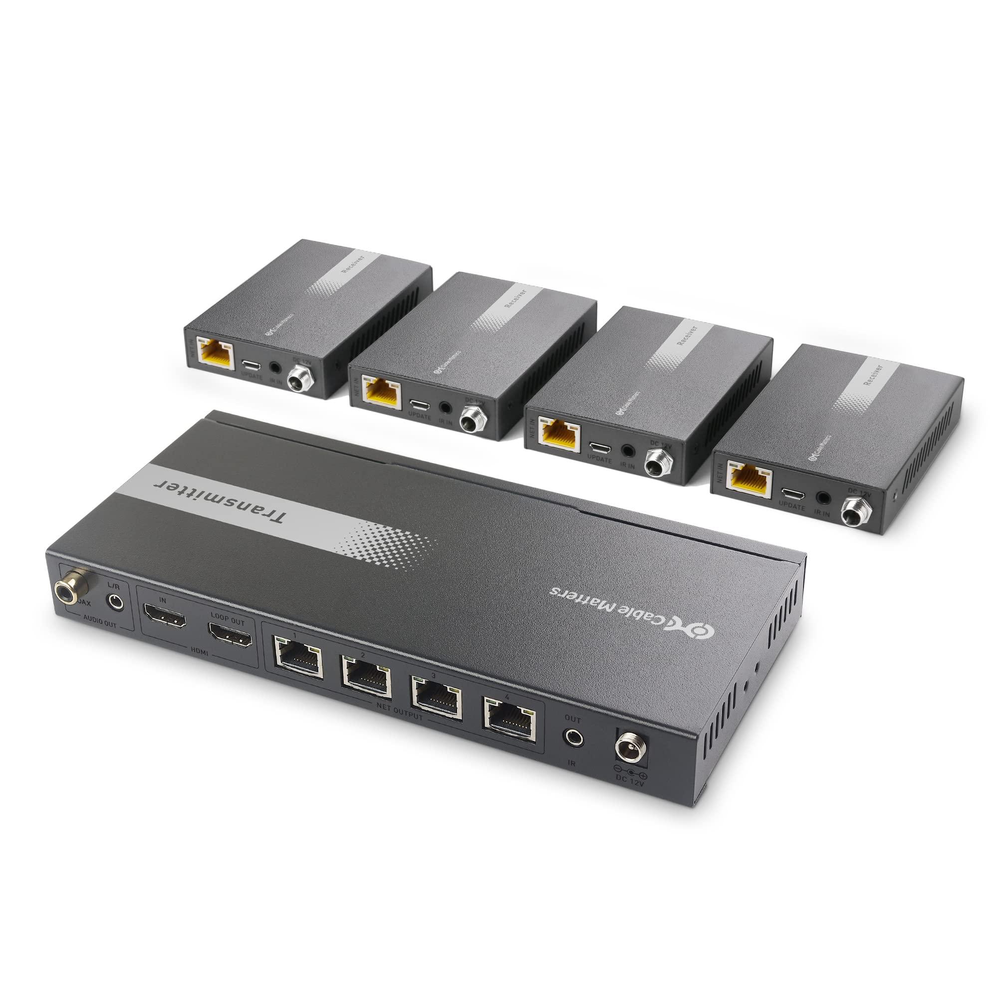 - 4 Way HDMI splitter extender distributes and extends identical 4K HDMI video and audio signals from a single HDMI source such as a computer, Blu-ray player, media streamer, cable box, or game console to 4 remote displays over Cat5/Cat 6 cable up to 164 ft at 4K 60Hz, 196 feet at 4K 30Hz, or 229 feet at 1080p