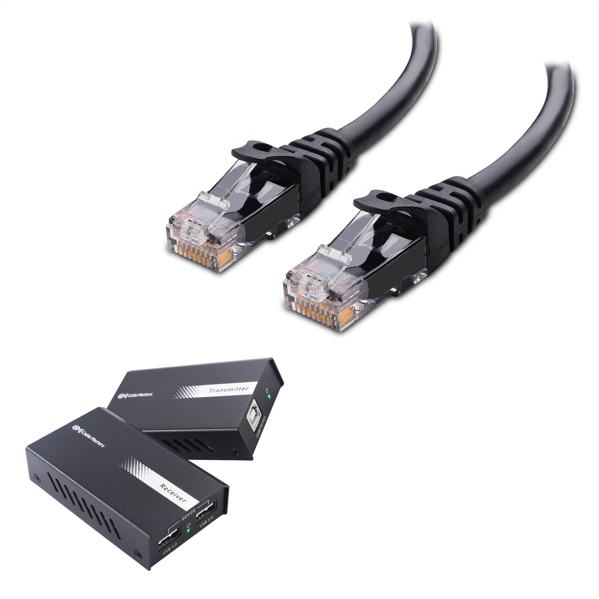 Cable Matters USB Over Ethernet Extender with 2X USB Ports up to 165ft - Full USB 2.0 Support USB Extender Over Cat6 for Keyboard, Mouse, Webcam & 10Gbps Snagless Long Cat 6 Ethernet Cable 100 ft