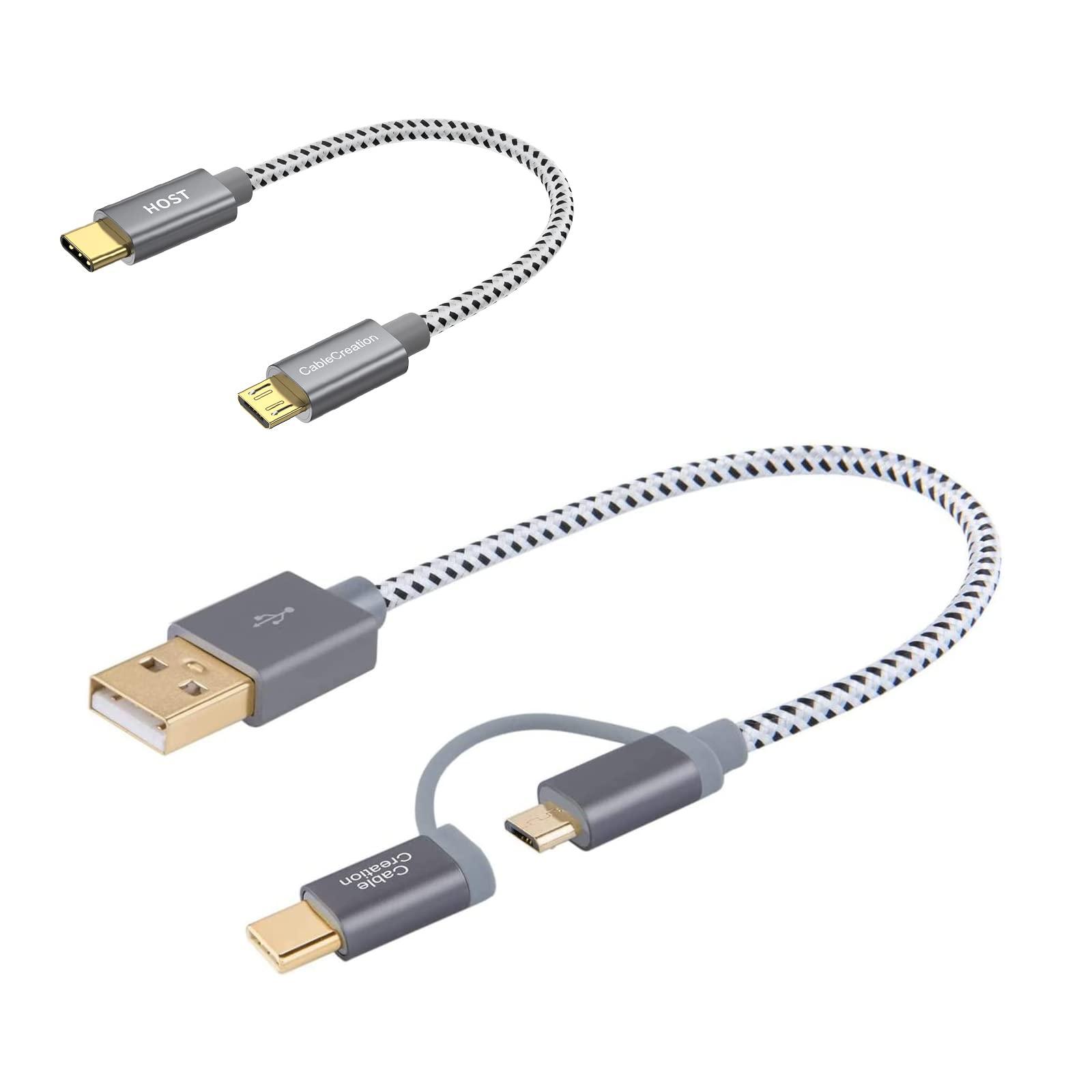 - 2 in 1 USB C Cable, CableCreation 0.8ft Micro USB + USB C to USB A Fast Charge Cord Braided, Compatible with Sumsang Note 8, Pixel XL, Android & USB-C Devices, 0.25 M/Space Gray Aluminum Case