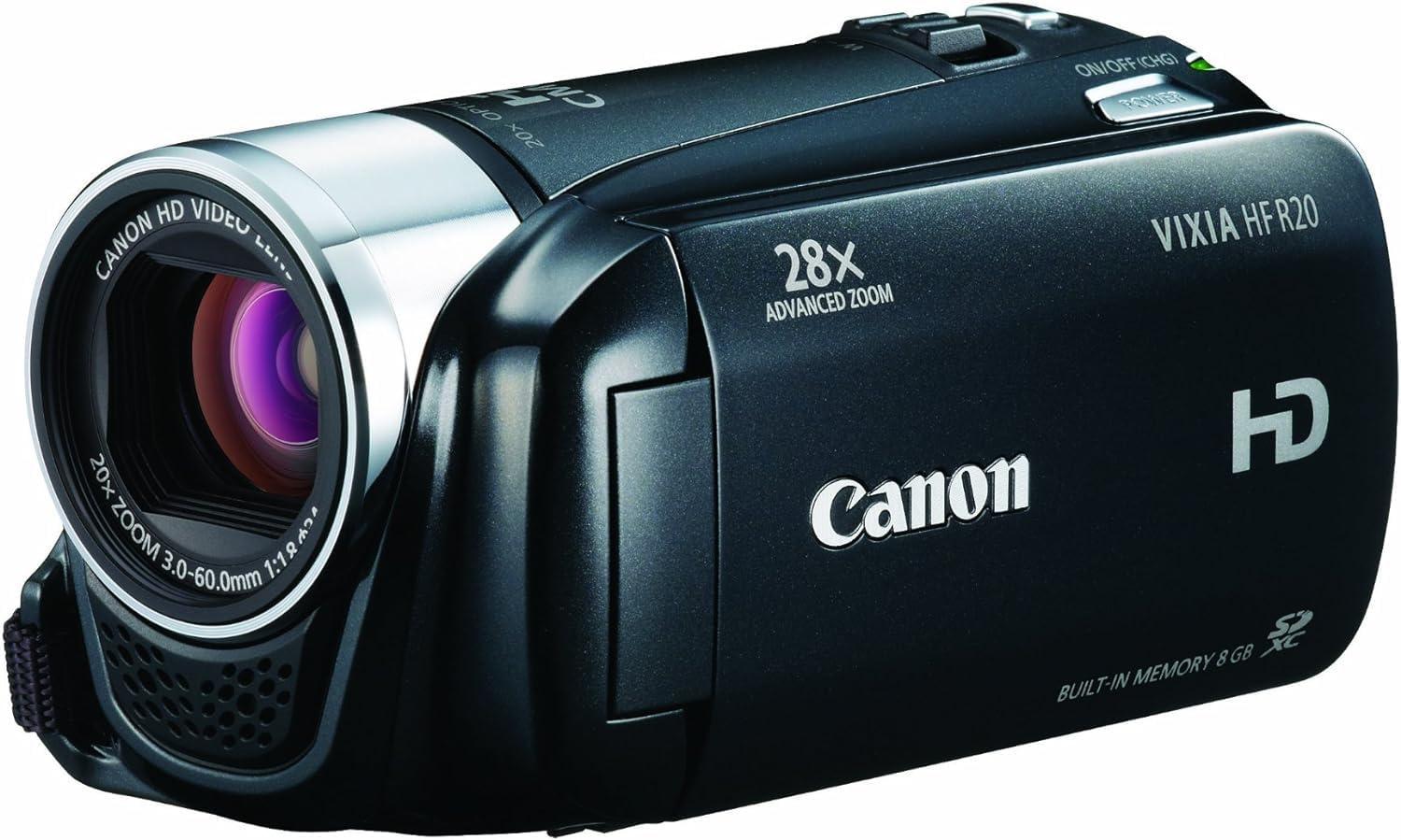 The Canon VIXIA HF R20 full HD camcorder records crisp, detailed 1920x1080 video with its 8GB of internal flash memory and shooting controls for versatile recording.