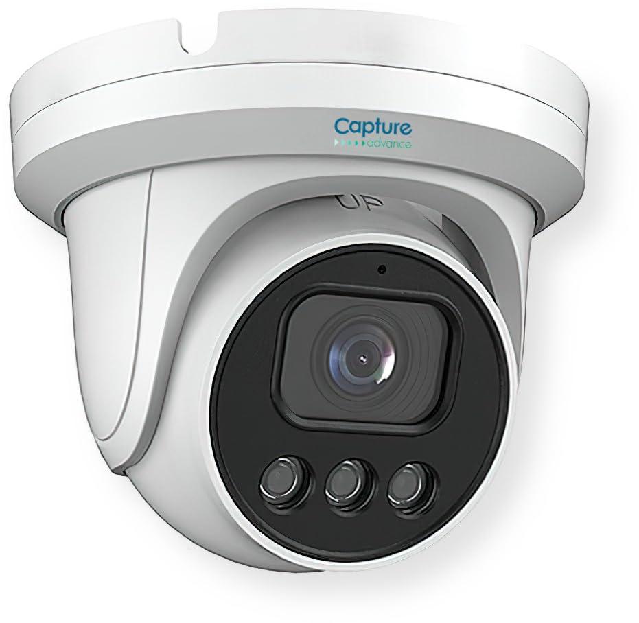 Capture Advance R2-5MPFXTUR WDR IR Turret IP Camera, White; 5MP Resolution; 2.8mm Max Focal Length; IR Distance up to 98 Feet; 2560 x 1920 True Day/Night; MicroSD Card Support; PoE/12VDC