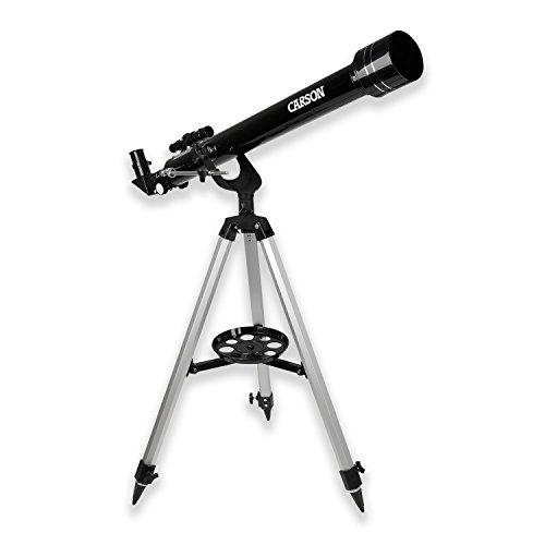 The SkySeeker Telescope from Carson Optical has precision 60mm Optics and a 40x-100x power range for high-quality imaging. Its 5x24mm finder Scope makes it a snap to "zero-in" on your subject. The SkySeeker Telescope comes with a deluxe aluminum Tripod. At Carson, we strive to make sure our customers are 100% satisfied with the quality of our products..