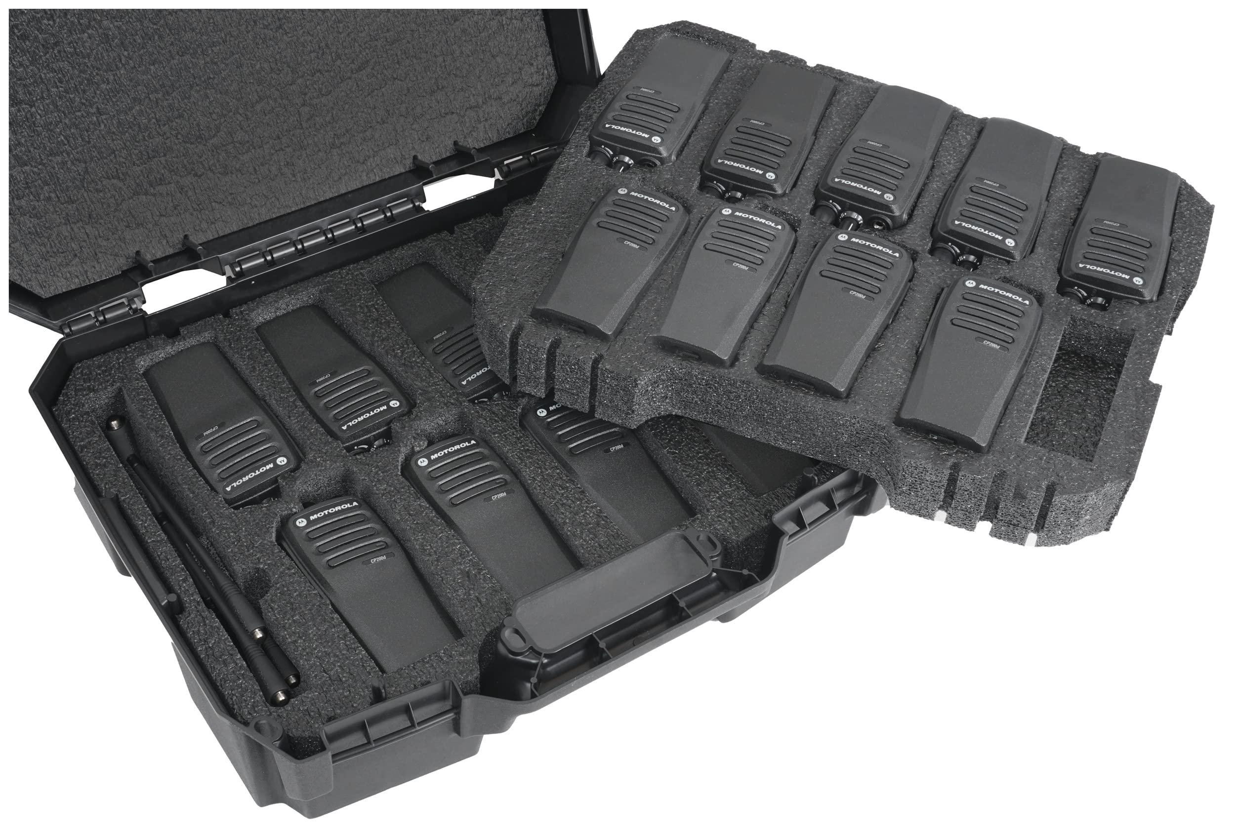 Case Club Case to fit 17 R2 / CP-200 / XPR 3500e Two-Way Radios. Holds up to 17 Motorola CP200 Radios in a convenient and compact case that is perfect for transportation & storage. This pre-cut foam insert securely holds both the radios & their antennas. The foam is a non-abrasive, shock absorbing, and extremely long lasting. This case was engineered to far exceed all competition and be next-level in 2-way radio organization, storage, and transport needs. Protect your investment, buy Case Club!