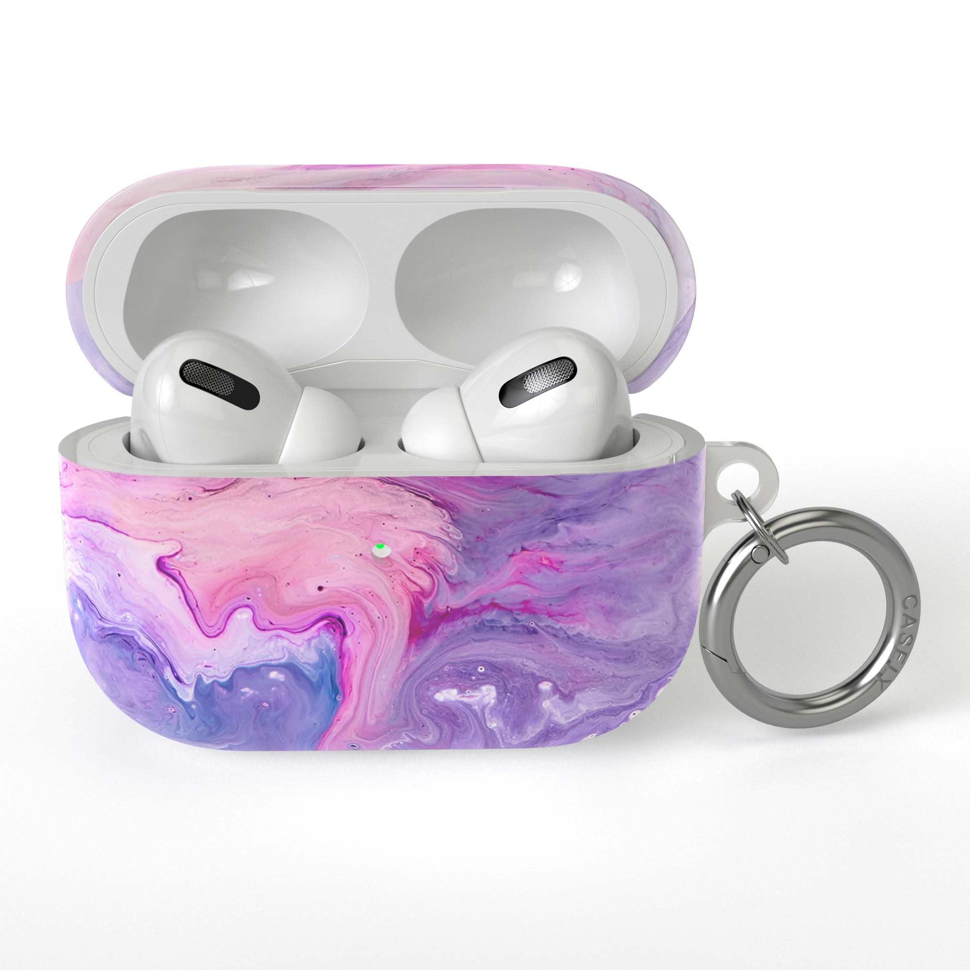Get lost in your music and get carried away in the swirls of color! This funky tie-dye style AirPods case is a throwback to the groovy 70s. . . maybe it's time to blast some of your parent's favorite tunes :) The attached keyring means you'll never worry about where your AirPods have run off to again. Attach them to your purse, backpack, or keys and show off your style! The strong case keeps your precious 'Pods safe from dust, grime, and debris. With a built-in opening for charging, you never have to take off your new pink and purple cover. We have cases for both regular AirPods and AirPods Pro 1. However you listen, Casely has you covered. Add a pop of color to your Pods, make a statement, and dance your heart out! Buy your very own tie-dye AirPods at Casely today! Searching for an phone case to match? Look no further!