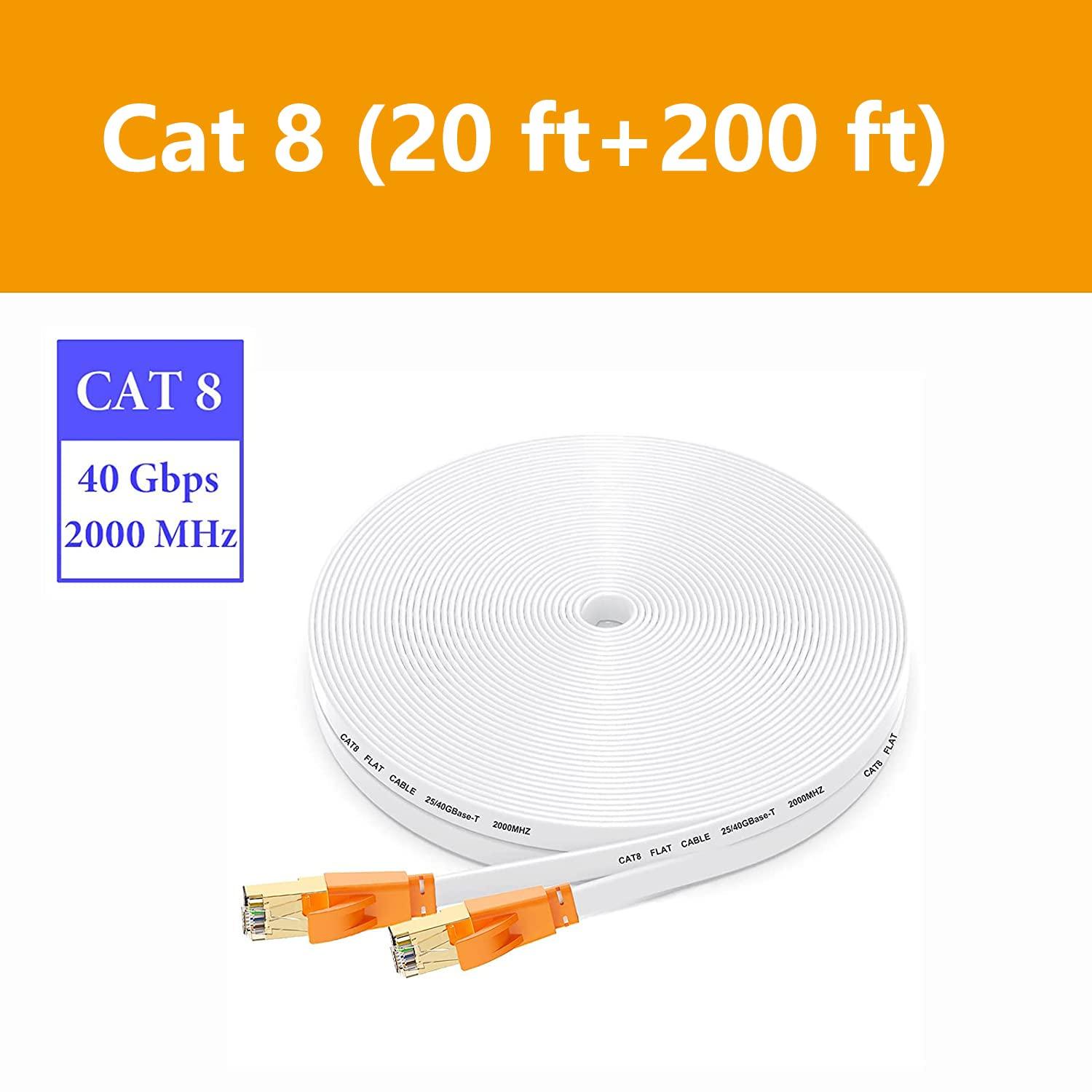 Cat 8 Ethernet Cable (20 ft + 200 ft), High Speed Flat Internet Network LAN Cable,Faster Than Cat7/Cat6/Cat5 Network,Long Durable Patch Cord with Gold Plated RJ45 Connector for Xbox,PS5,Router,Gaming