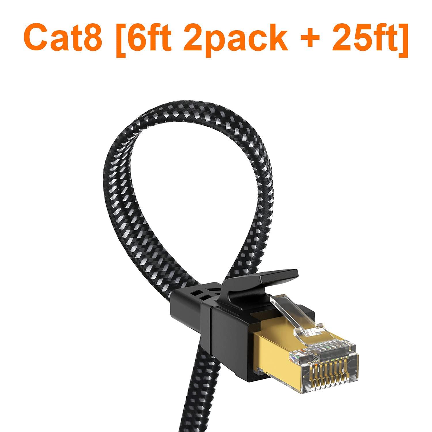- Incredible Durable Double braided nylon exterior make Cat8 Ethernet Cable more durable, flexible and tangle-free. And this sturdy cat 8 patch cord can be bended at least 10 thousands times, so that you can reuse it without any concerns.