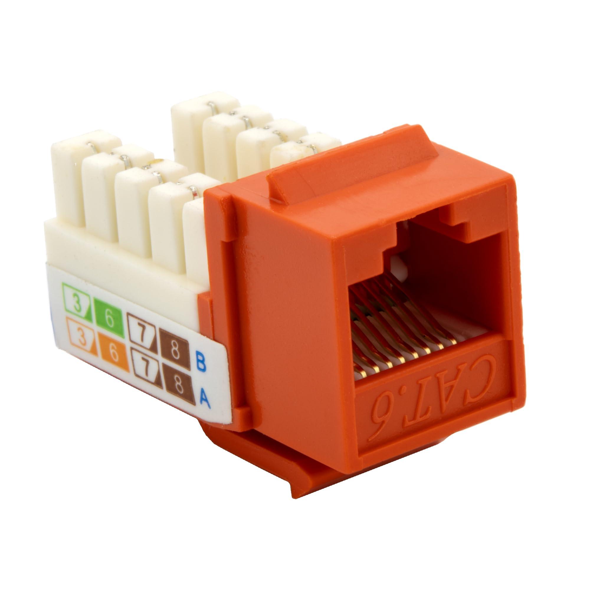 Cat6 Keystone Jack, Orange, RJ45 Female to 110 Punch Down, CableWholesale