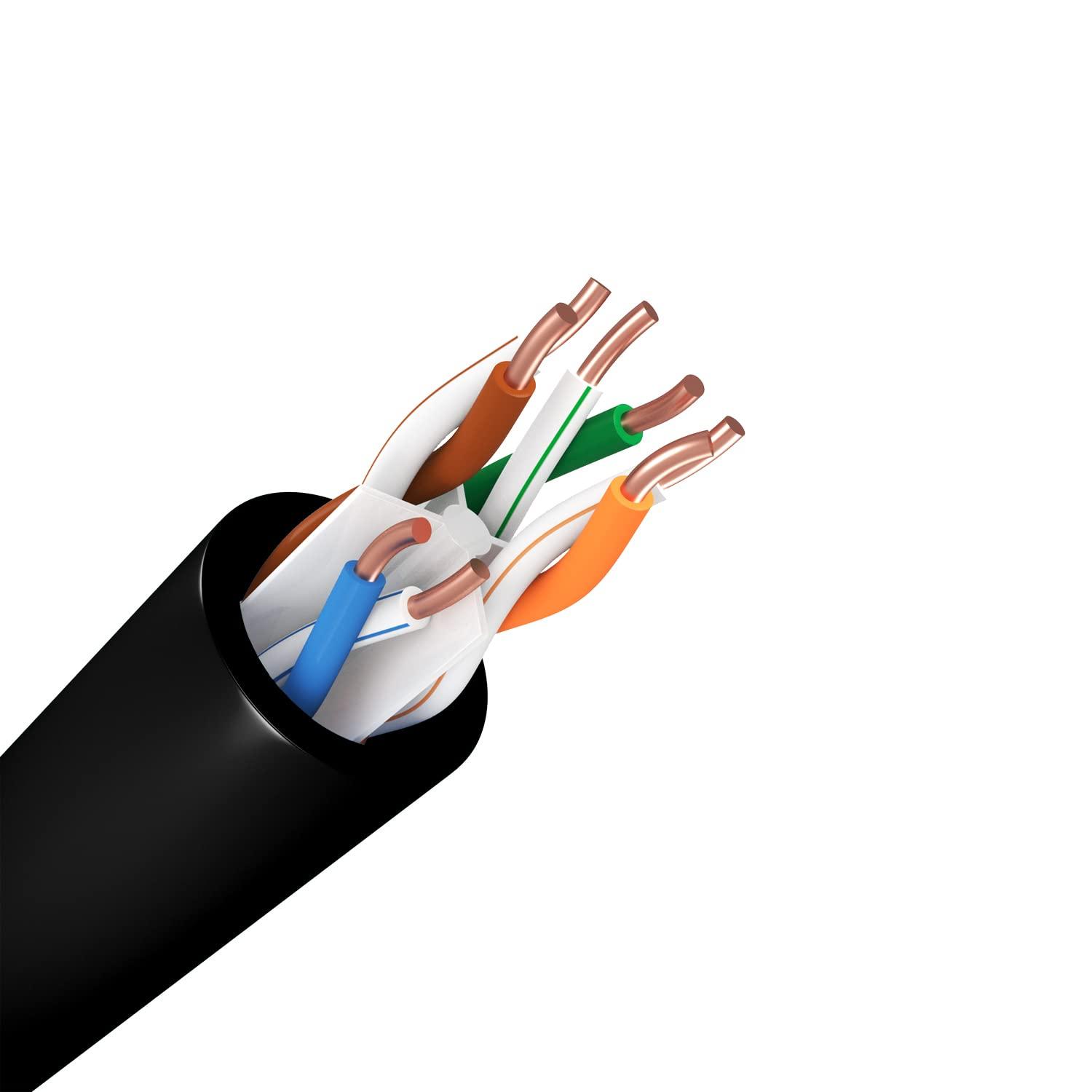 Cat6(e) Ethernet Cable 23AWG Solid Bare Copper Bulk Raw 600MHz 230 ft Outdoor/Indoor Heat Resistant Riser Rated CMR Black No Ends 1 Ft to 1000 Ft Available