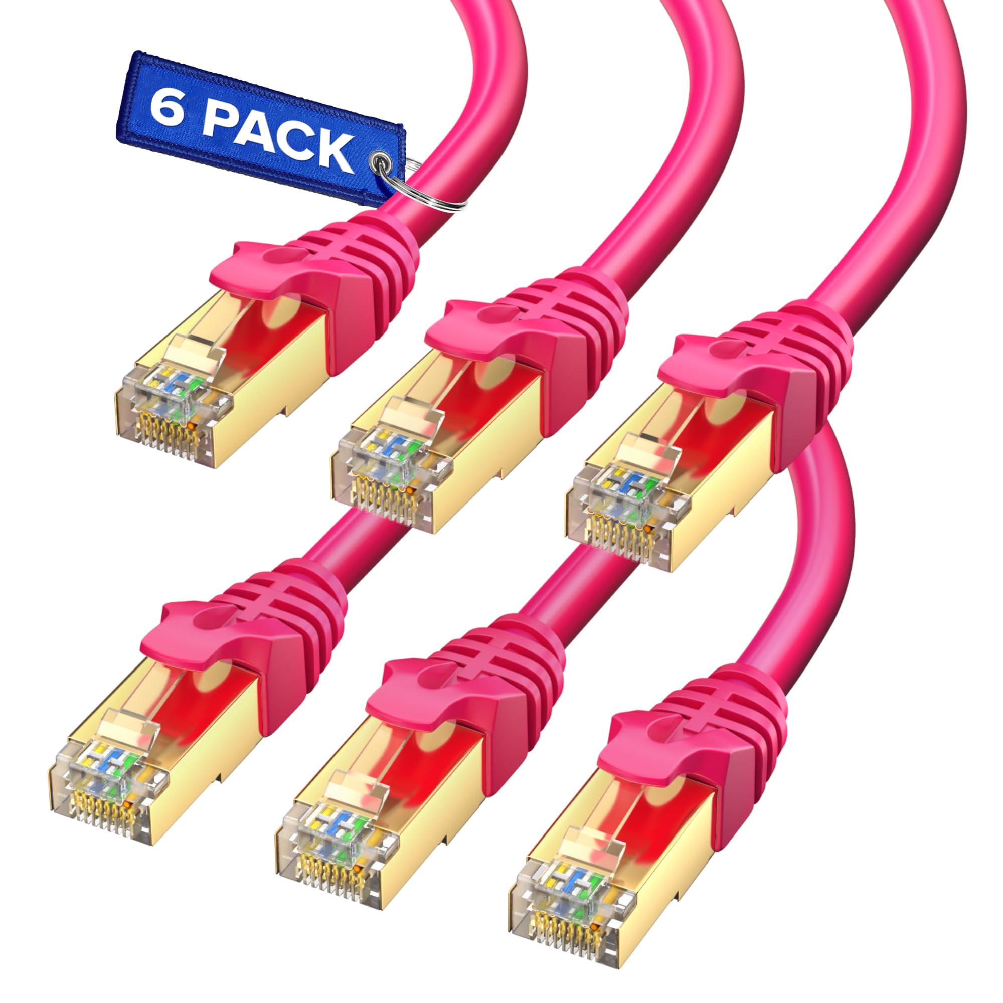 - 6-Pack in Pink: Includes 6 12 Feet Cat7 cables in vibrant Black ideal for organized and color-coded network setups.