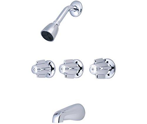 - CLASSICAL THREE-HANDLE TUB FAUCET AND SHOWER DESIGN FOR ANY DECOR - This three-handle tub faucet and shower head set is a classic transitional design in polished chrome.