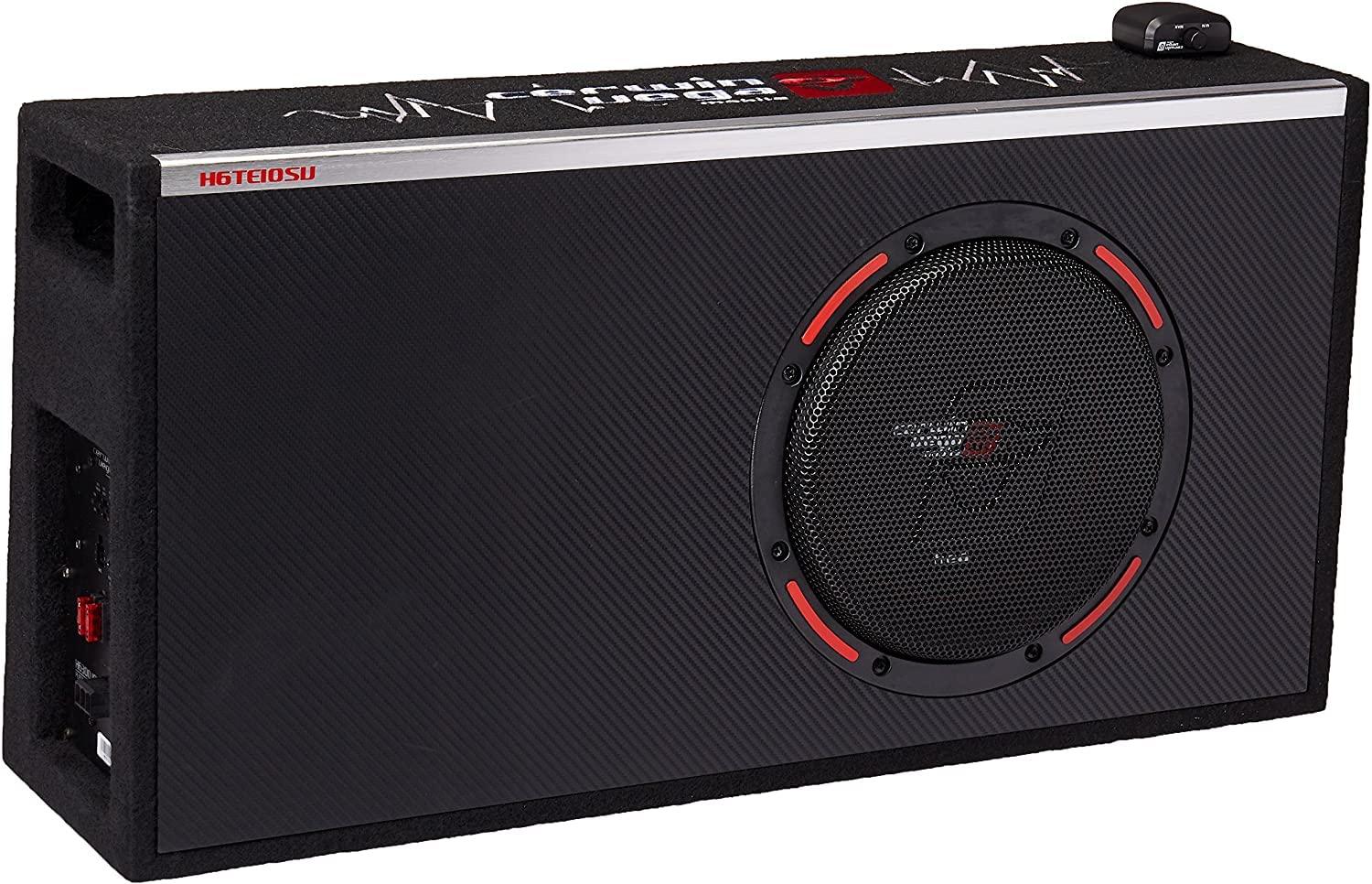 High Power Amplified Car Subwooder with 10-in Woofer and wired remote control w/Tuned port * Amplifier and output power: 150W RMS @ 2ohms @100Hz, 400W MAX. * Bass Boost: 0 /+6dB/+9dB Twin T-Filter (narrow Q). * LPF Filter: 50-150Hz, Phase: Variable 0 to 180 degrees. * PWM MOSFET Power Supply/Thermal Protection Circuit. * Adjustable Input Sensitivity: 0.2V -10V. * RCA and High-Level Inputs, Remote Subwoofer Control Included. * Delayed Soft Remote Turn On, Plug In Power Terminal for easy install. * Dimensions: 10-in Woofer: 28-in Wide x 14-in Height x 7.7-in max Depth x 6.1 min Depth. * Included detachable mounting tabs. Thunderball Marketing Inc. Distributors DeejayLED LLC Distributors all rights reserved.