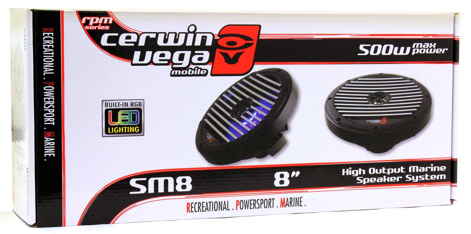 The Cerwin Vega 8" 4 2-Way Marine Coaxial Speaker is an excellent choice for anyone looking to enhance their marine or outdoor audio experience with durable and high-performance speakers. With features like IP65 marine grade compliance, UV stability, and waterproof construction, these speakers are built to withstand harsh environments while delivering superior sound quality. The integrated RGB LED lighting adds a customizable aesthetic element, making these speakers not only functional but also visually appealing. Ideal for use in boats, motorcycles, and other outdoor applications, the Cerwin Vega marine coaxial speakers provide reliable and impressive audio performance. The 8" 4 2-Way Marine Coaxial Speaker from Cerwin Vega is designed to provide high-quality audio performance in marine and outdoor environments. These speakers are built to withstand harsh conditions while delivering exceptional sound quality. Here are the detailed features and specifications:
