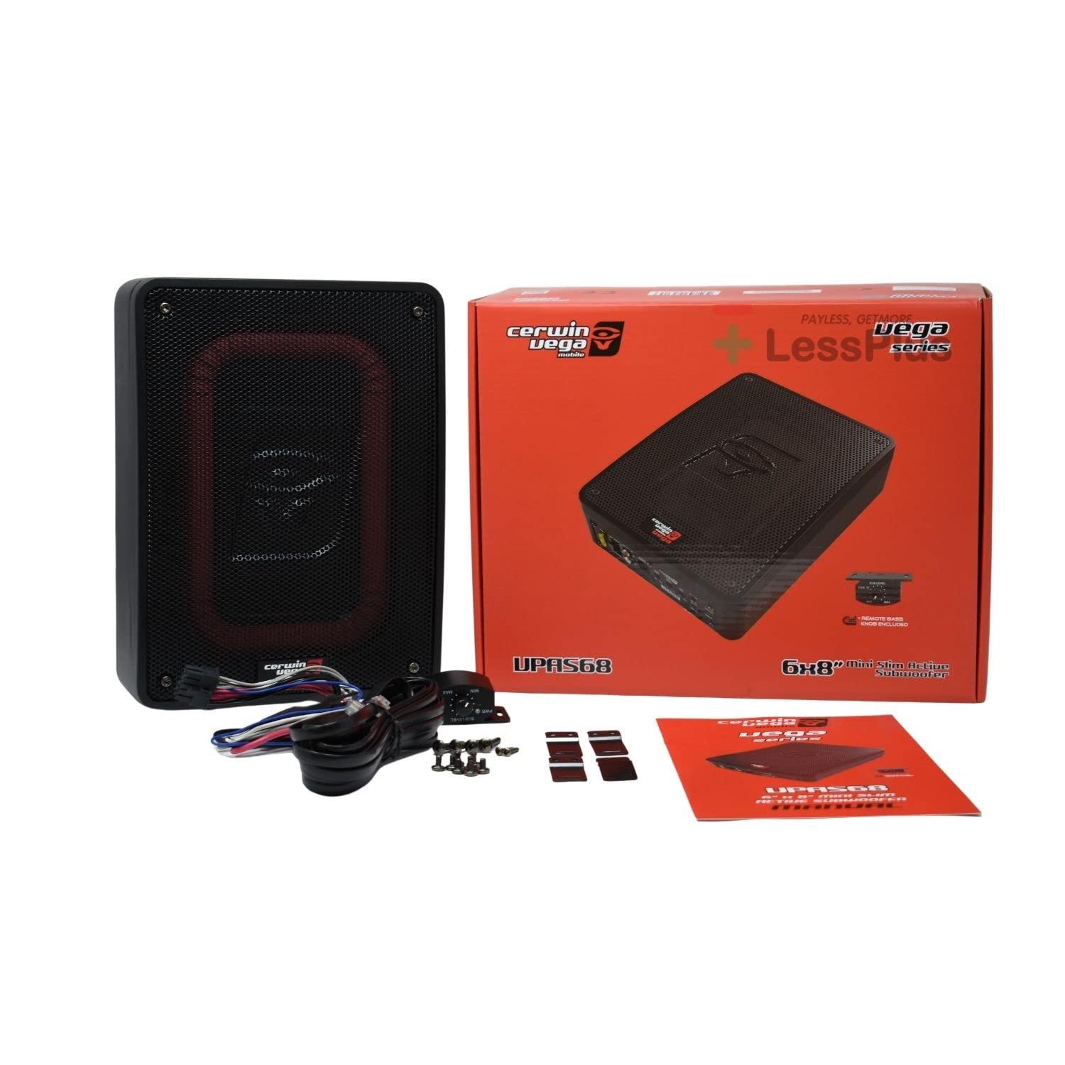 CERWIN-VEGA MOBILES assortment of award-winning VEGA ACTIVE POWERED SUBWOOFERS provides the ultimate all-in-one Bass Solution Package without taking up any valuable trunk space. With a fully integrated amplifier encased in a cast aluminum heatsink in conjunction with the Subwoofer, a simple plug-and-play operation is achieved. Specifications Power: 150W RMS 2 600W Max Bass Boost: 0-12dB LPF Filter: 30-150Hz Phase Switch: 0 or 180 degrees PWM MOSFET Power Supply/Thermal Protection Circuit Adjustable Input Sensitivity Remote Subwoofer Control Included RCA and High-Level Inputs Remote Bass Knob Included Dimensions: 14.2 / 360.0mm