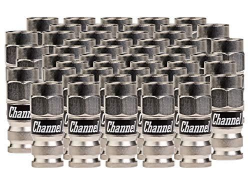 Channel Master Coaxial Compression F-Type Connectors are professional grade connectors designed for High-End systems that demand the highest quality digital audio/video transmissions as well as high-speed data transmissions over coaxial cable. Leveraging over 70 years of experience building professional-grade television reception products, Channel Master has developed the most robust coaxial connector on the market designed specifically for high-end audio/video systems and professional TV antenna installations. Poor quality coaxial connections are a leading point of failure in cable, satellite and TV antenna systems, taking this into consideration Channel Master has integrated key technical features that will prevent 99.9% of single issues that arise from poor coaxial connections. In addition to industry leading performance, the Channel Master Coaxial Connectors have a high-end polished nickel finish that looks elegant when the connection to equipment is visible. Not Your Typical Connector The Channel Master compression connector is not your typical cheap Gold-Plated connector, instead we put our focus on what really matters. Digital Signal Future Proofing Channel Master coaxial connectors deliver enhanced reliability for signal reception of current and future standards such as 4K, Ultra HD and HDR. Continuous Ground Provides a continuous ground regardless if the connector is tight or loose. A broken ground path due to a loose connector will cause signal quality issues that could result in intermittent macro-blocking of video. Excellent Shielding Effectiveness A connector with poor shielding can let unwanted signals penetrate and interfere with your signal. Interference introduced through the connector on the cable will cause signal quality issues resulting in intermittent or complete loss of audio and video. Indoor/Outdoor Design Integrated dual o-rings sit on both the front and back sides of the Channel Master compression connector nut. The o-rings are constructed of high tensile strength NBR rubber and provide a superior barrier against moisture intrusion preventing long-term signal issues when moisture makes it's way onto the inner part of the coaxial cable. The 100% brass all metal design delivers maximum cable retention and will hold up over time as opposed to connectors constructed of plastic. Whats Included (50) Connectors Instruction Sheet 1-Year Limited Warranty Features Universal Cable Support: Easy insertion on RG6 standard, tri and quad shield coaxial cables Locking Feature: Torque Retaining Nut keeps the connection tight where temperature cycling and vibration will loosen other connectors. Elegant / High-End Look: Special Polished Nickel Plating provides a high-end look for those installing luxury A/V systems. Easy-Spin Nut: Unlike other connectors, once the connector is compressed the nut spins freely for an easy installation. ****Requires an industry standard cable preparation tool such as the CM-1015 and exclusively the CM-1015 compression tool for proper installation. Tech Specs Specifications Body material C 360 brass Body finish Polished Nickel O-ring Ethylene-propylene rubber Return loss -28 dB up to 3 GHz Insertion loss -0.2 dB up to 3 GHz RFI shielding -80 dB RG6, RG59, RG11, dish network approved, BNC Connector, RCA connector, f connector, cable connector, tv connector, trs connector, rg6 connector, quad shield connector, security camera connector, satellite connector, direct tv approved, coaxial cable connectors, cable end, compression connector, connectors, connector, coax cable connectors, coax cable connector, coax cable ends, coaxial cable ends, cable connection, coaxial cable to rca, coax to rca connector, cable tools, coax to rca, crimp connectors, cable end, cable end connector, PCT TRS6l, TRS6l, PCTTRS6l, PCT-TRS6l, PCT TRS, antenna connector, connector for antenna, connector antenna, f connector CM7170, CM-7170, Connector Choose a Quantity 10-Pack Connectors 25-Pack Connectors 50-Pack Connectors Kit 10-Pack with Tools RG6 F-Type Connectors
