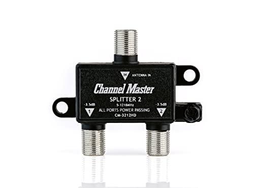 The Channel Master Splitter 2 is a 2-way RF splitter that offers exceptional performance and long-term reliability for those looking to split a TV antenna signal to multiple televisions. This high quality splitter is weather proof for outdoor use and provides significant advantages in center conductor retention and electrical performance that basic splitters do not offer. The Splitter 2 from Channel Master was specifically designed for antenna installations but it is also compatible with cable TV signals.