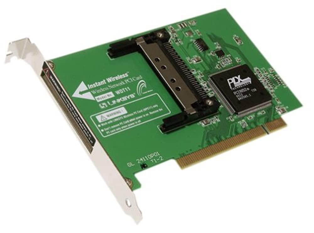 Whether you're at your desk or in the boardroom, the Linksys Instant Wireless PCI adapter (with the Linksys Instant Wireless network PC Card inserted) allows you to share printers, files, and more within your wireless LAN infrastructure, increasing your productivity and keeping you on the network.