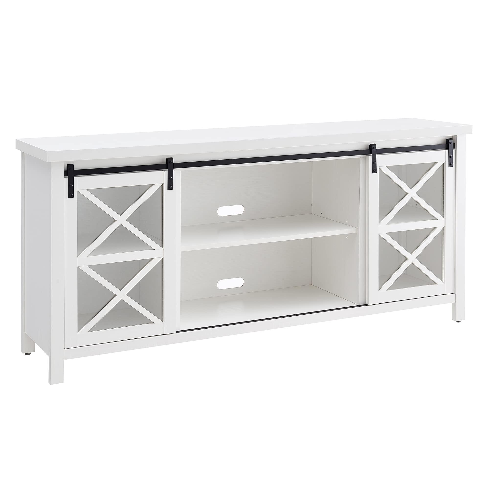 Combine functionality and on-trend design with this sturdy TV stand. Its rich wood tone creates a warm neutral palette that will blend seamlessly into any color scheme, while its functional sliding barn doors add a touch of modern farmhouse whimsy. A must-have for living areas and entertainment spaces, this TV stand sets the stage for the big game, a movie marathon, or that season finale everyones been talking about.