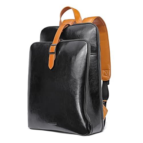 CLUCI Genuine Leather Laoptop Backpack for Women 15.6 Inch Laptop Backpack Purse Travel Business Large Vintage College Work Backpack Shoulder Bags Black