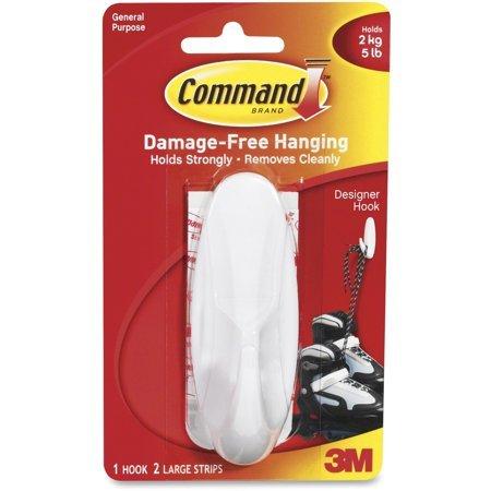 Command Designer Hook & Strips Plastic Holds Up To 5 Lb Large White