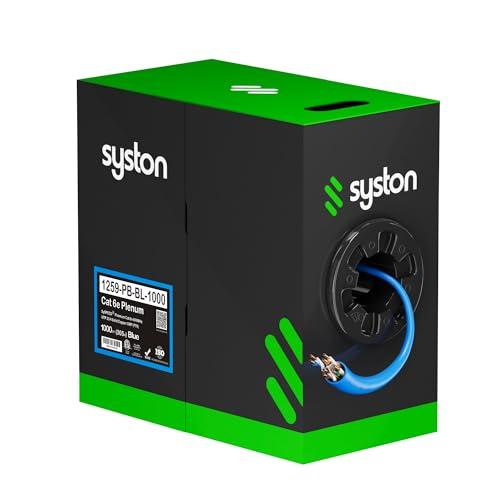Syston Cable Technology Cat 6E Ethernet Network Cable - 1000 FT, 600MHz 23AWG Solid Bare Copper Wire Outdoor/Indoor, Bulk No Ends 10 Ft to 1000 Ft Available, Heat Resistant Riser Rated - CMP