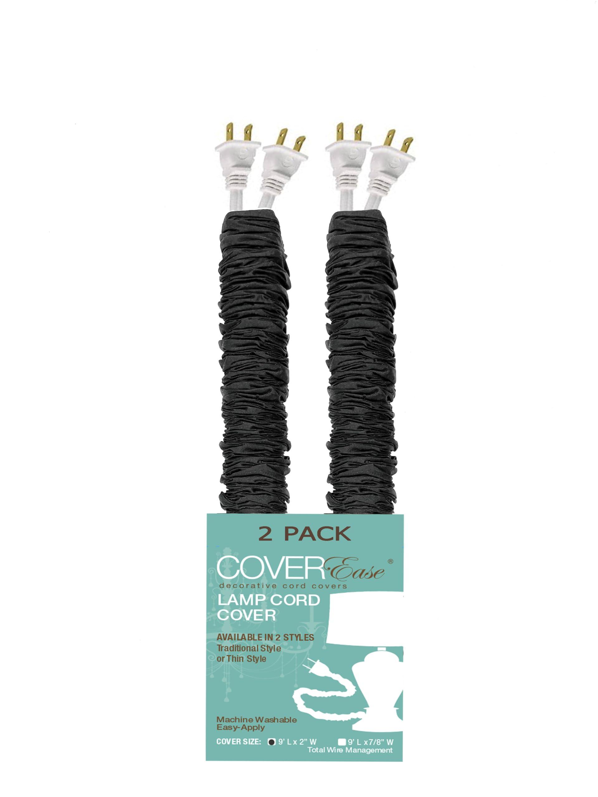Our beautiful silk like lamp cord covers made of a quality faux dupioni fabric. **9 ft long x 2 in wide**. Easy to apply with patented tube application. The cover slides on over the plug of an electrical cord by inserting the plug into the tube and sliding the cover off onto the electrical cord Just insert plug into tube & slide cover onto cord! Covers up to 2 cords with 1 cover. Guide: (1) cover - tight gather 2ft - 4ft, medium gather 4ft, loose gather: 5ft - 8ft. *Longer cords apply 2 or more covers & tuck ends inside proceeding cover to create seamless look Removable & Washable. **Offered in a 1 PACK or 2 PACK **