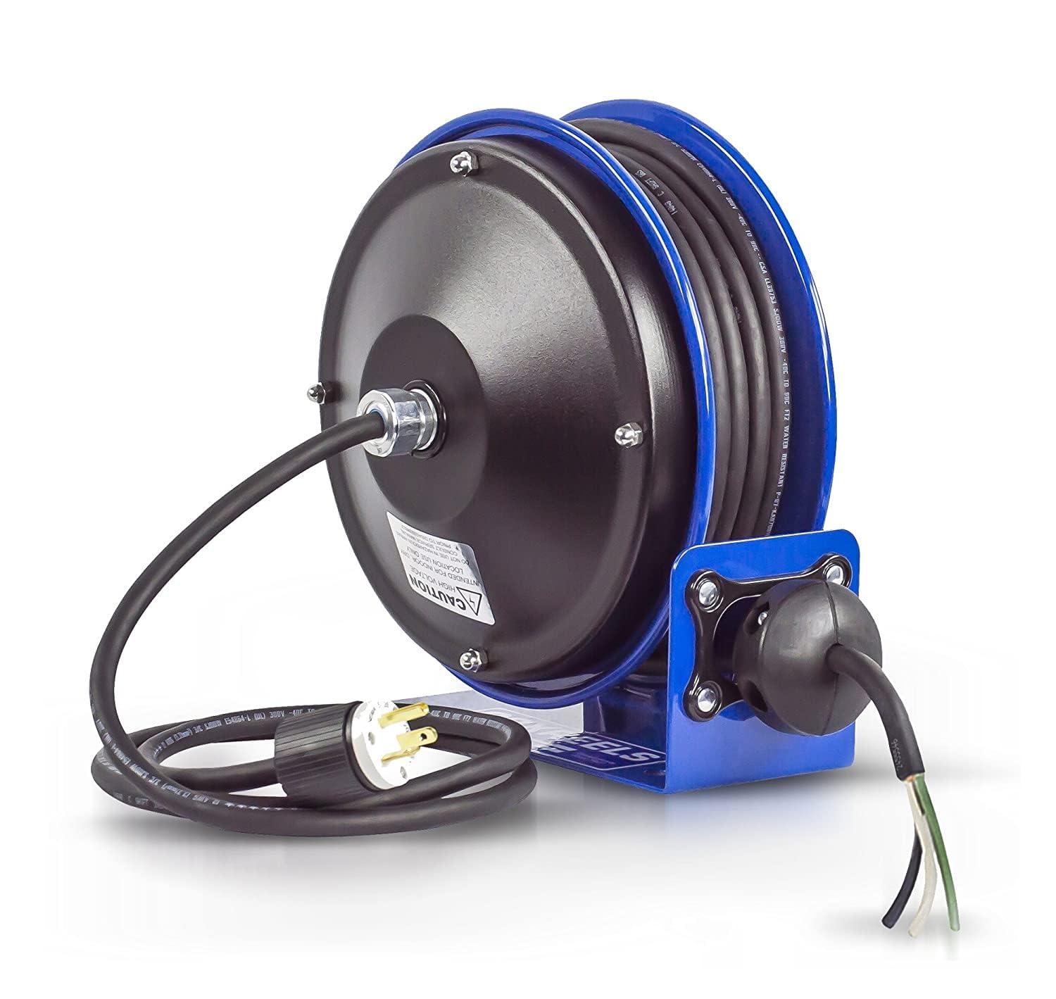 - FEEL THE POWER: The enclosed spring motor is factory tuned and matched, letting you extend the cable and fully retract when youre done. This model is rated at 20 AMP and 115 volts, but the slip ring is rated at a max of 25 AMP and 600 volts.
