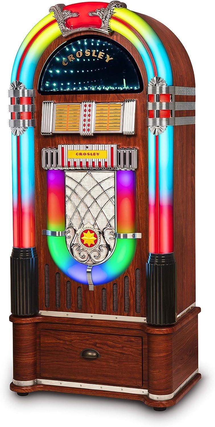 - INCLUDES REMOTE: Control the jukebox's music and lighting w/ an ultra-compact remote control.