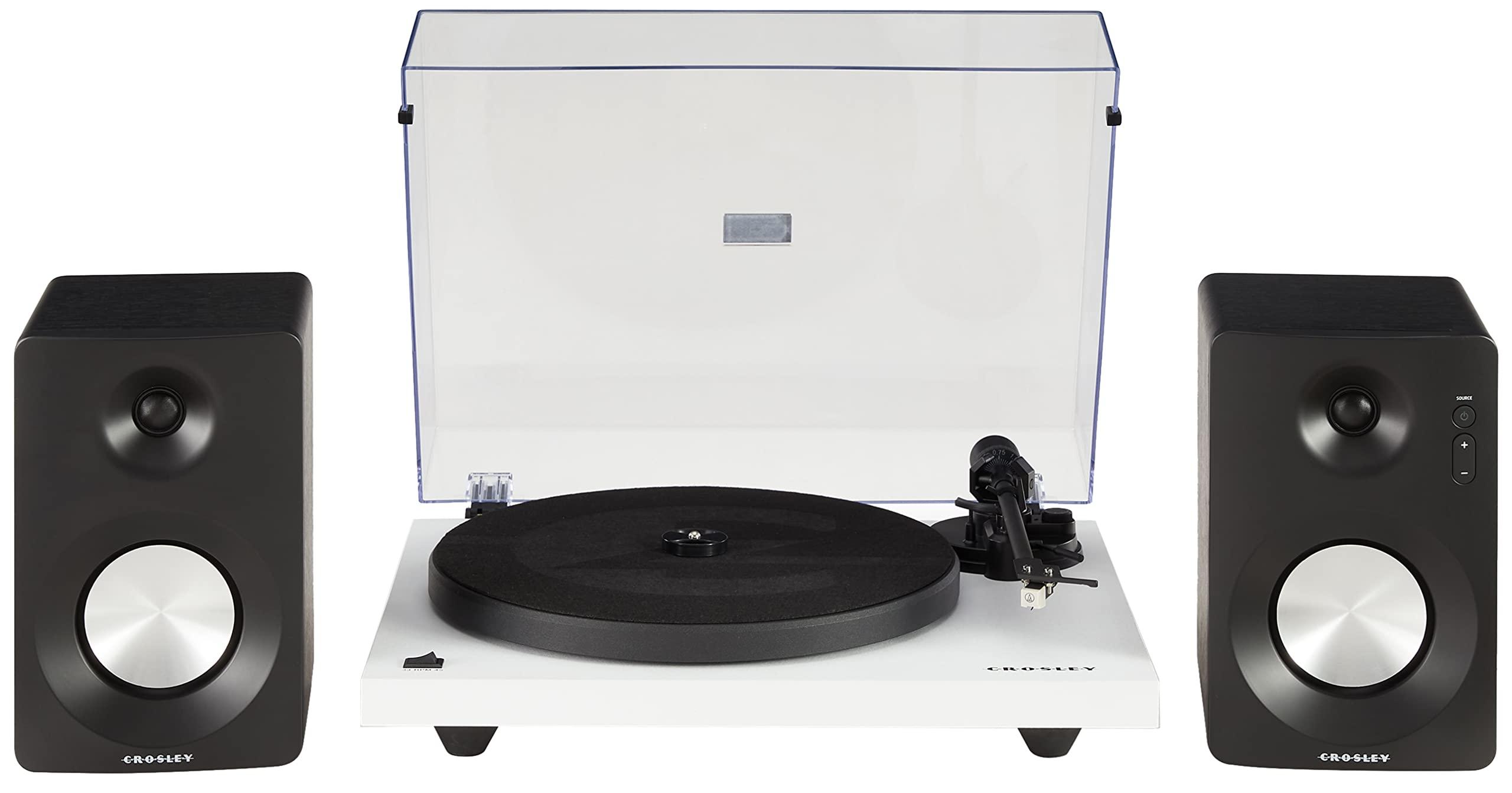 - EXCEPTIONAL SOUND: Set atop an audio-grade MDF plinth, this turntable features a pre-mounted moving magnet Audio-Technica cartridge for premium sound quality. The belt-drive motor and resonance-dampening feet eliminate interference for smooth playback.