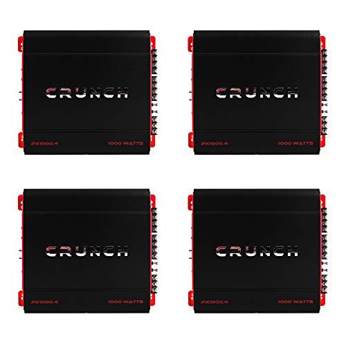 This Crunch PX 1000.4 4 Channel Amplifier is a perfect entry level amplifier for your car audio needs. It has high quality circuit and hardware designs along with exclusive technologies to improve sound quality and minimize distortion. Crunch POWERX incorporates full Class A/B technology in stereo and 4 channel amplifiers along with Class D in the mono. Class A/B sounds better, but the PC boards require a bit more space that in other circuit topologies. With Crunch POWERX we have trimmed away some of the more esoteric features to deliver a great amplifier that sound like you would expect Crunch to sound. The POWERX line also includes Crunch technology like QTD (Quick Thermal Dispersion) Technology which puts more aluminum on the heatsink than a normal amplifier. QTD assures the amplifiers make huge power while running very cool with nearly undetectable musical distortions.