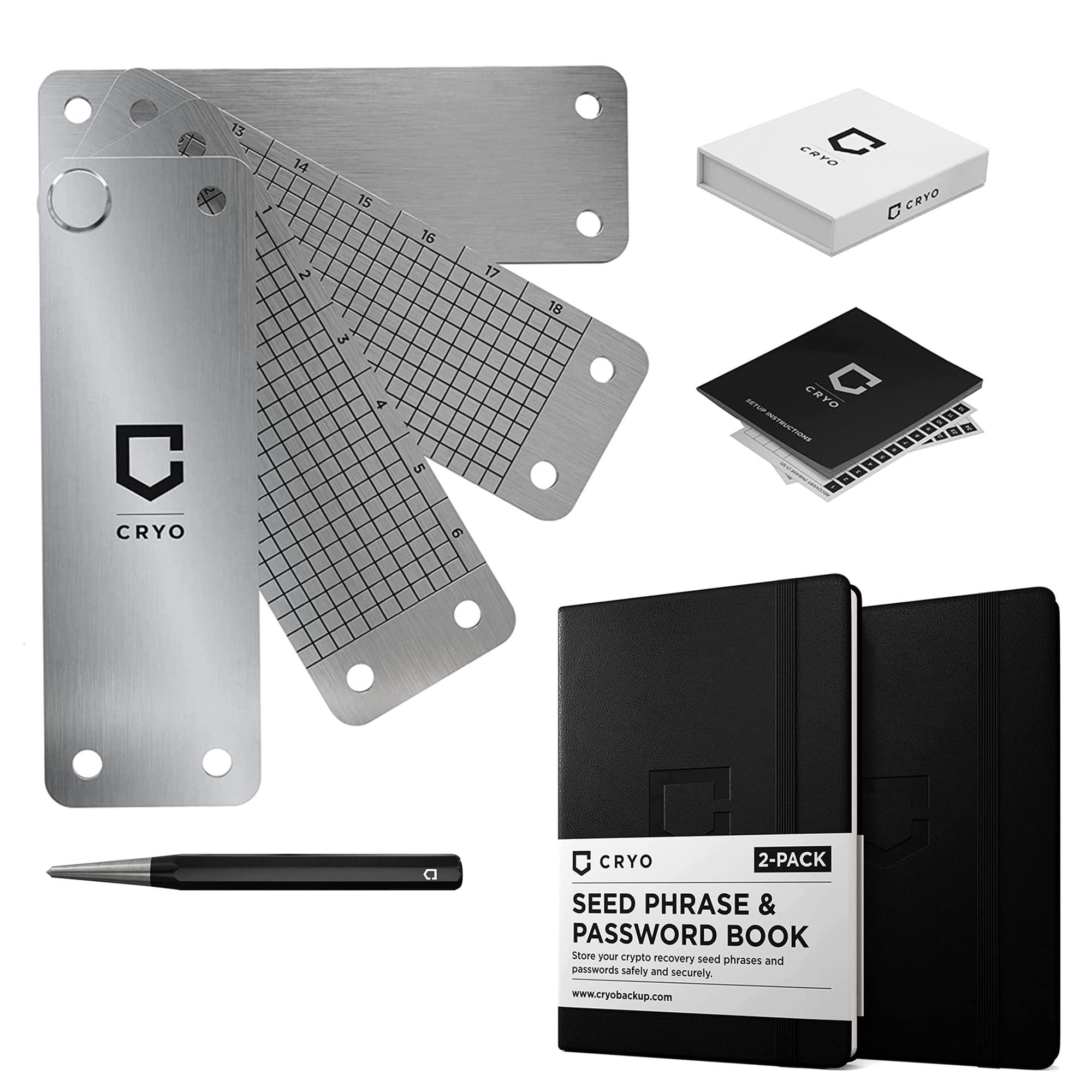 - PROTECT YOUR CRYPTO - The CRYO seed phrase storage system prevents the total loss of your crypto. This bundle includes the CRYO DOT stainless steel backup system + 2 seed phrase notebooks