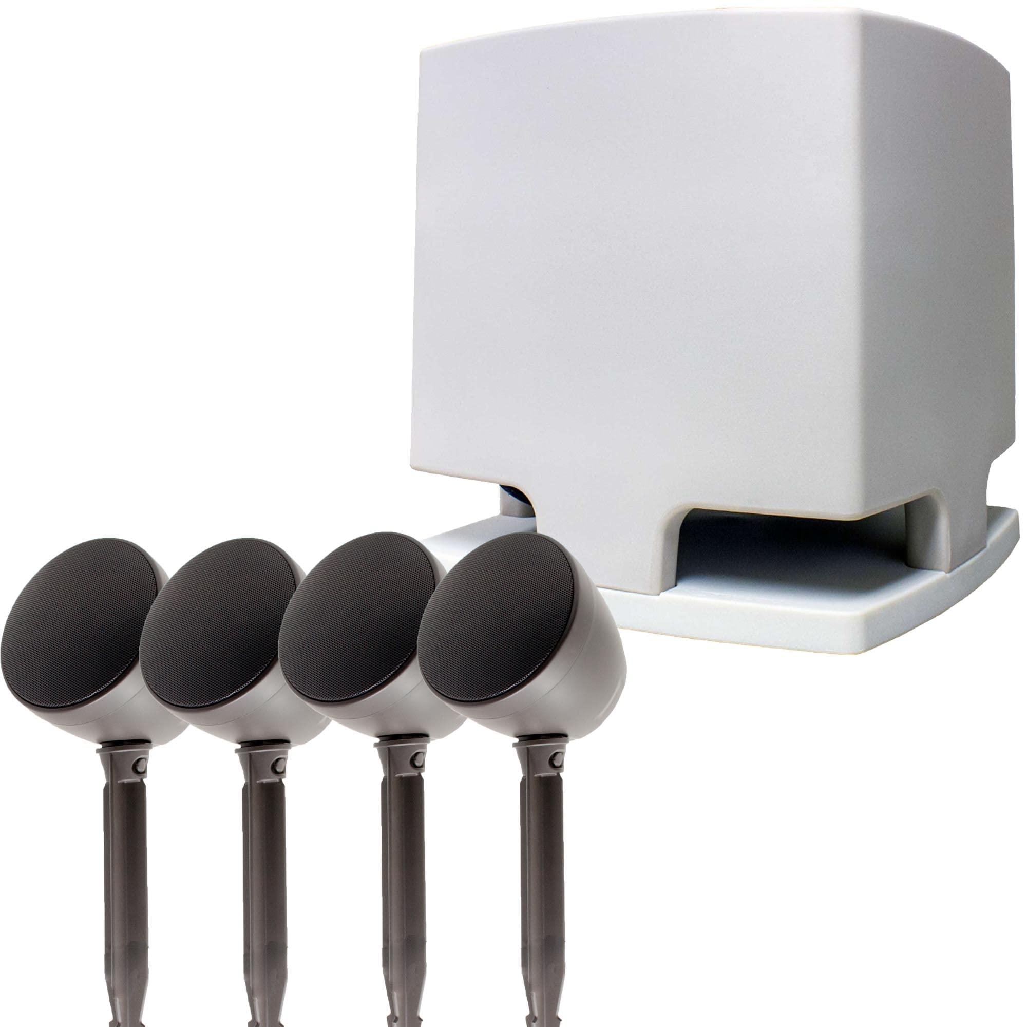 8'' Tan Hardscape Subwoofer and 4 Landscape Satellite Speakers Package Time to bring your favorite music outside! Pairing your favorite song with your outdoor entertainment space has never been easier. TruAudio's compact and versatile system quickly transforms your backyard with incredible immersive sound. The UltraScape series is a water-tight outdoor sound system with a minimal footprint. The UltraScape speaker system is perfect for small outdoor listening zones. Easily connect to 2 channels of a multi-channel amplifier or Zone 2 from your A/V receiver. It can be strategically installed in almost any space, delivering smooth rich sound. Includes: (1) 8'' Hardscape Subwoofer (4) 4.5'' Satellite Speakers AS-1 - Acoustiscape 4.5'' Landscape outdoor 2-way speaker, 2.5 - 30 watts, 8 / 70v / 100v switchable, includes stakes. SPEAKER TYPE - Satellite Speaker: 4.5'' molded polypropylene landscape speaker POWER - 60 Watts min; 150 watts (system) SENSITIVITY - 88 dB (min) FREQUENCY RESPONSE - 45 - 20kHz (+/-3 dB) IMPEDANCE - 60 SPEAKER TYPE - Sub: 8'' injected polypropylene hardscape subwoofer INPUTS - 2 channel audio signal in OUTPUTS - 2 channel signal out
