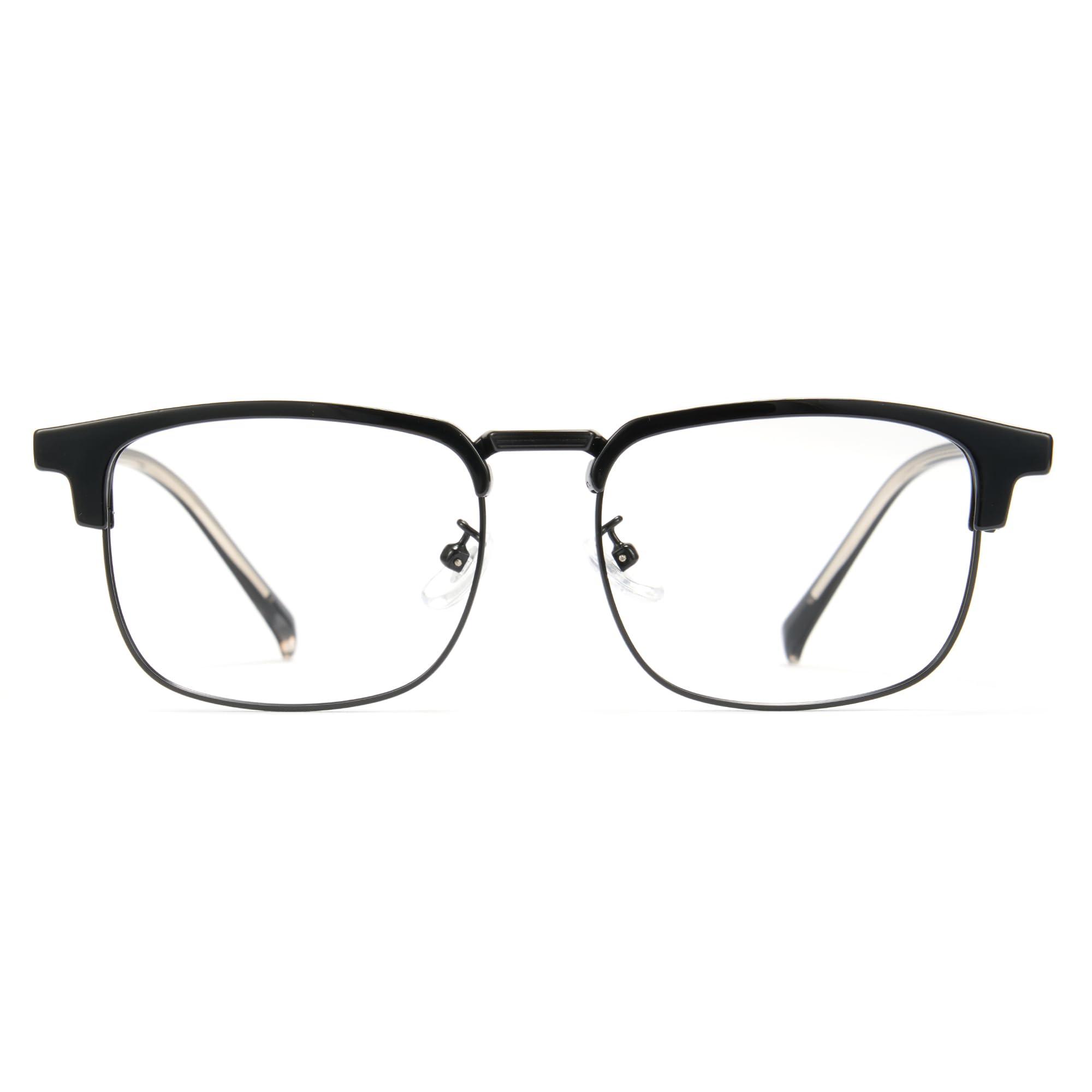 • FASHION DESIGNHalf Rim square frame design friend for men women, flexible spring-hinged temples adjustable up to 145 to better fit various face shapes, Metal hinges with longer lifetime than other plastic ones.
