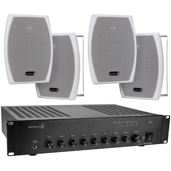 Dayton Audio Dayton Audio DA120R 120W 70V Rack Mixer-Amplifier - (4) 5-1/4" White 2-Way Indoor/Outdoor Speakers