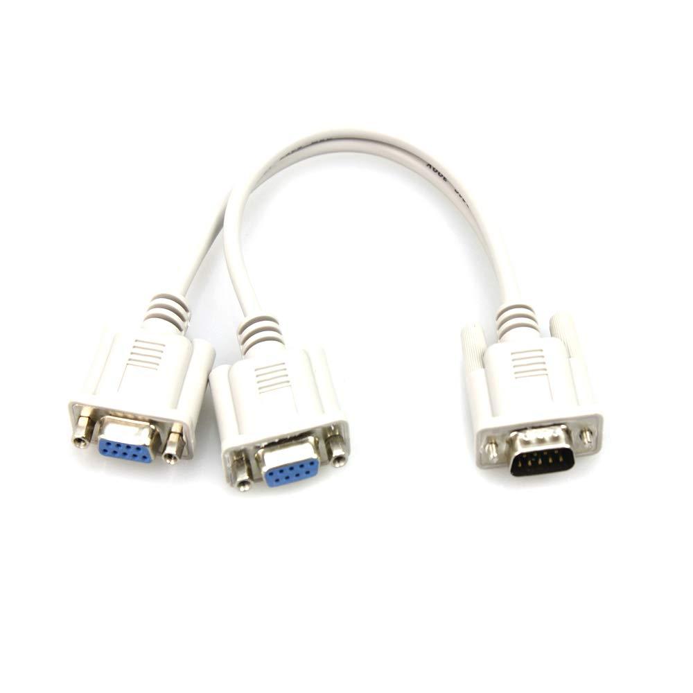 DB9 Male to 2 Female Serial Rs232 Splitter Cable Rs232 Male to 2 Female 2 in One Cable for Cash Register Displays - White