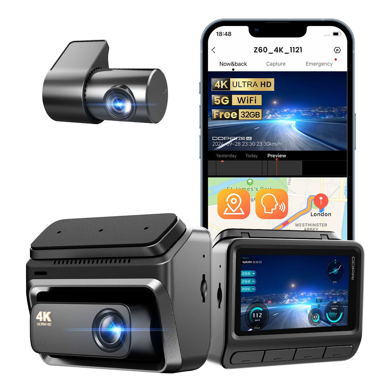 - 4K Video Quality & 3 IPS ScreenDDPAI dual-channel dash cam Z60 features 3840P*2160P front and 1080P rear cameras to capture every detail of the road and license plates clearly front and back, ensuring that you have high-definition footage in case of incidents. The 3-in full-color display allows you to quickly review recorded footage and adjust settings.