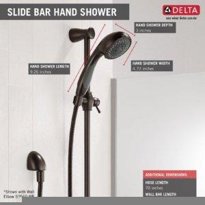 - LIFETIME LIMITED WARRANTY: You can install with confidence, knowing this Delta slide bar handheld shower head with hose is backed by Delta Faucet's Lifetime Limited Warranty