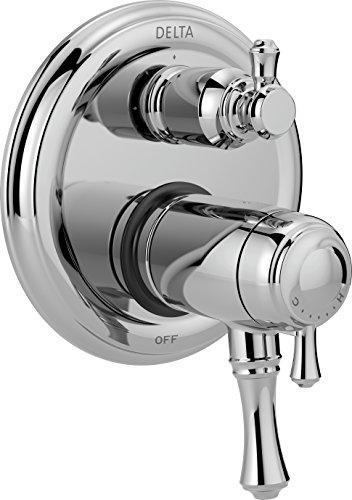 The Delta MultiChoice Integrated Shower Diverter consolidates custom shower design with its consumer-preferred streamlined style eliminating the need for an additional diverter valve. The traditional round style lends a timeless feel to your space. With three popular style choices to coordinate with any bathroom dcor, it provides you the flexibility to select the type of custom shower functionality you prefer. With the MultiChoice Universal system, you have the freedom to upgrade style and functionality later. And, because theres no need to alter plumbing behind the wall, you save time, effort and money on future renovation updates. Delta's dual-function thermostatic valve cartridge keeps water temperature consistent (within 3.6) by actually measuring and monitoring the temperature of the water. Temperature can be set in order to remain consistent shower after shower.