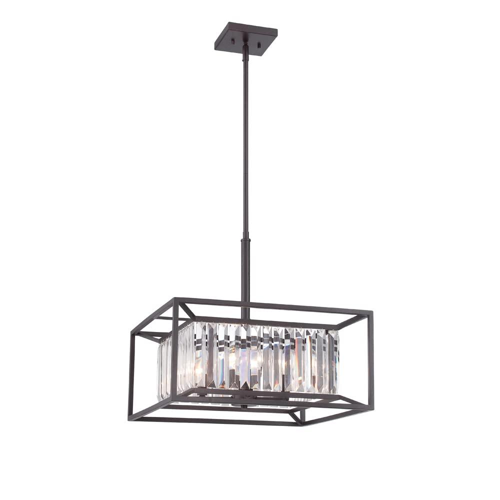 The Linares Collection comes in Vintage Bronze with Crystal Prisms glass. This Contemporary Linares 4 Light Linear Chandelier will complement the decor in any room of your home. Made with solid steel construction to look great and last for years to come.