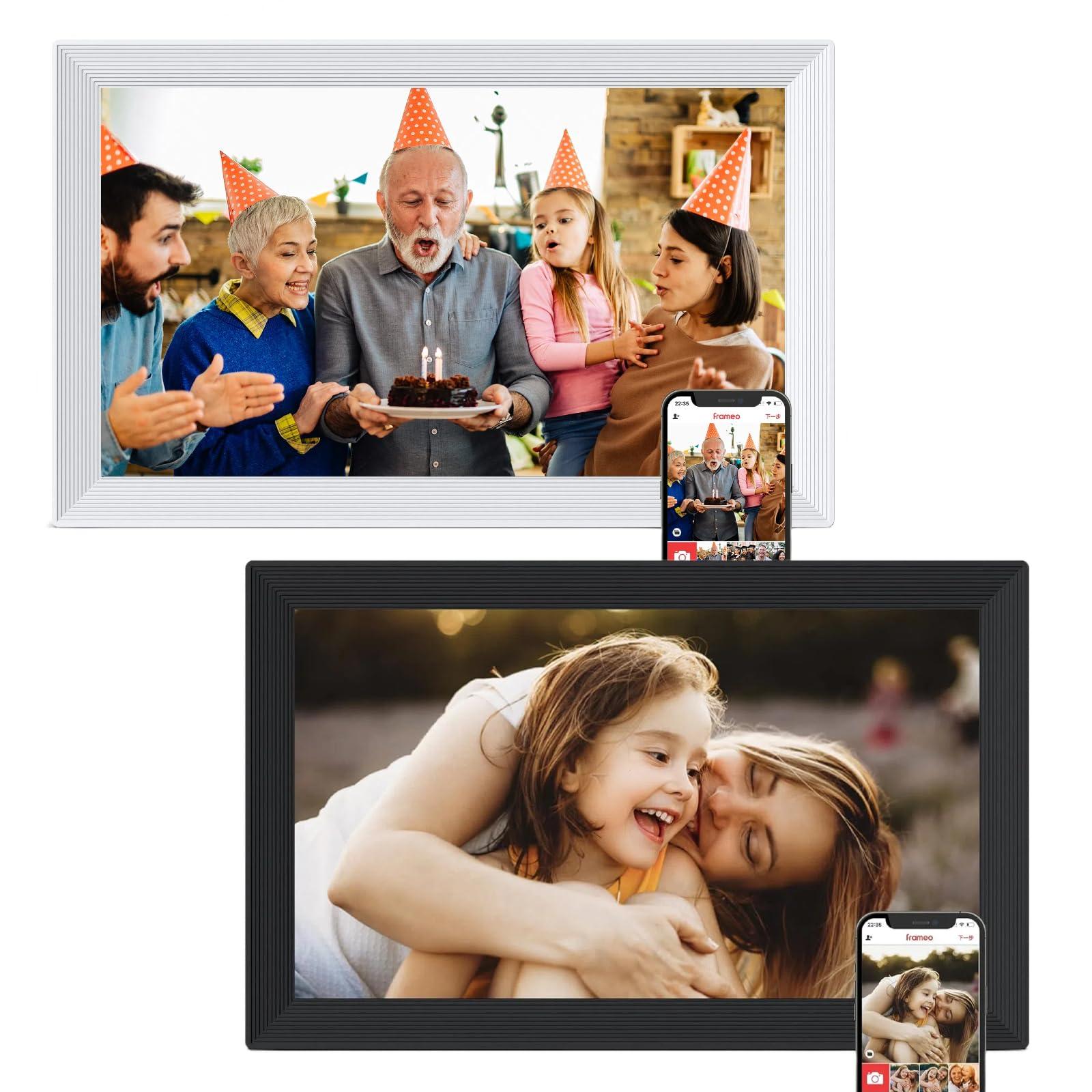 Digital Picture Frame 2 Pack, 15.6 Inch Frameo Digital Frame WiFi, 1920*1080 HD IPS Touch Screen Digital Photo Frame Electronic, 32GB Memory, Auto-Rotate, Share Photos/Videos, Black + White