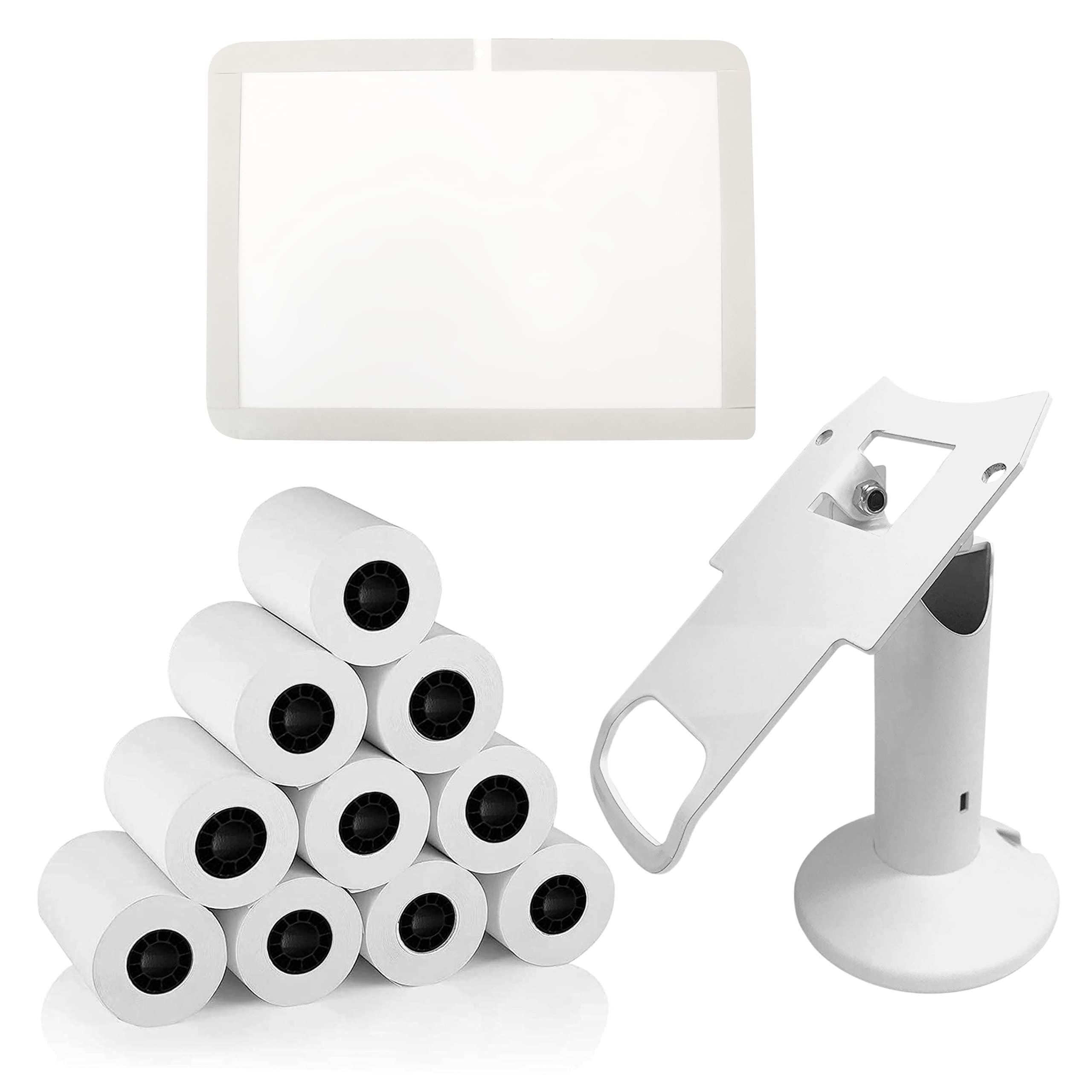 - Accessory pack also includes Clover Mini screen protector and 10 rolls of thermal paper 2 1/4" x 85' bundle; essential bundle to enhance customer experience; screen protector enhances visibility with anti-glare properties without affecting screen touch sensitivity