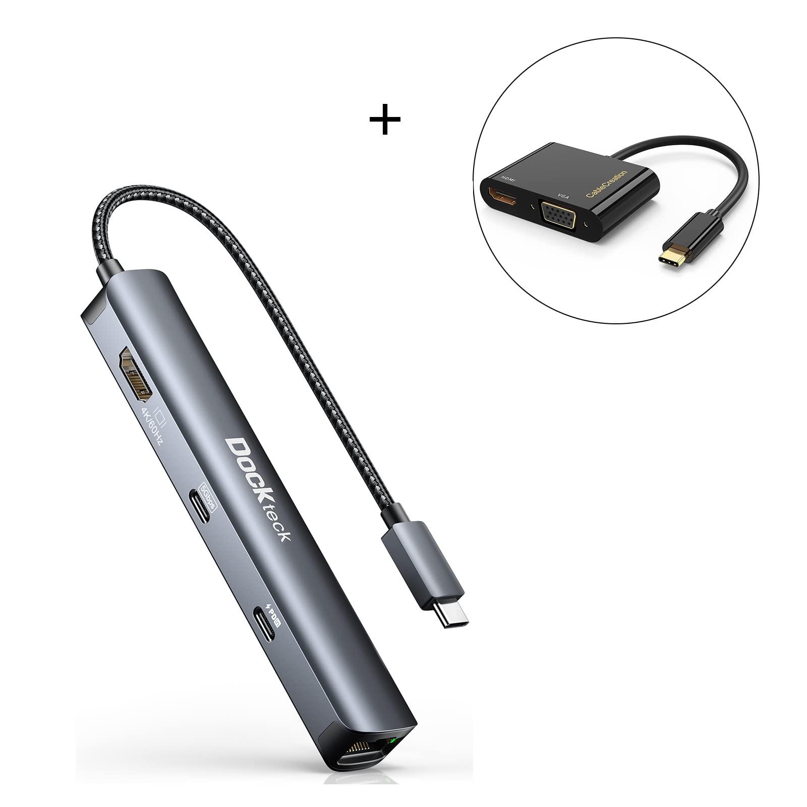 USB C Hub Multiport Adapter, Dockteck 6-in-1 USB C PD Ethernet Hub with 4K 60Hz HDMI, USB-C Data Port, 1Gbps Ethernet, 100W PD, 2 USB 3.0 for MacBook Pro/Air, iPad Pro/Air/Mini 6, Surface Pro, XPS Bundle with Product Image USB C to HDMI VGA Adapter, CableCreation USB Type C to Dual VGA HDMI Splitter Converter, Compatible with MacBook Pro 2020, iPad Pro 2020, Dell XPS 13/15, Yoga 910, Surface Go, Chromebook, Galaxy S20