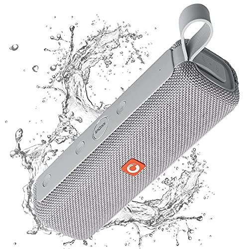 - IPX6 Waterproof, Dustproof, Crashproof: The waterproof Bluetooth speaker is made with sturdy fabric that protects it from water, sand, and dust. The rugged silicone housing and port cover make the speaker shock-resistant and rugged.