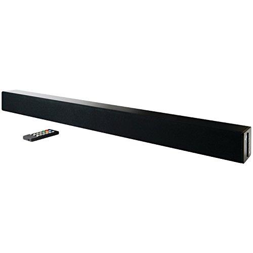 2-Channel stereo sound, 60ft wireless range, built-in stereo speakers, optical digital audio, aux and RCA stereo audio inputs, subwoofer output, Digital volume control, LED pairing, power and source indicators, wall mountable, cloth speaker grille, includes learning remote, AC/DC power adapter.
