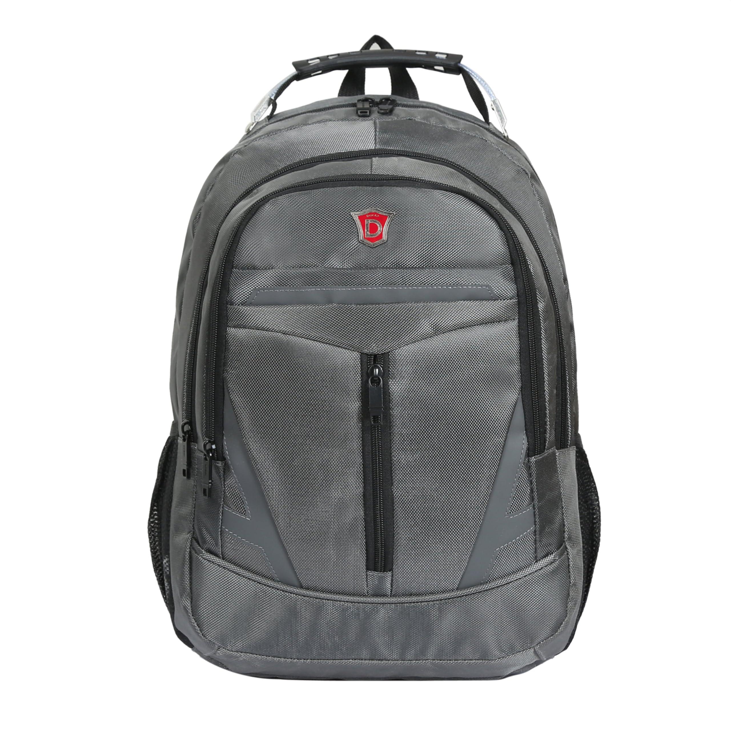 Description: This DUKAP EMINENT is made of heavy-duty 1680D Nylon will give the desired comfort and look good while enjoying it. With a super roomy interior and multiple compartments, this backpack makes your life easier. Multi-functional work backpack to carry on items. As a travel bag, it can be perfect for its space facilities and weather-resistant specification. The Interior offers a large multi-compartment design. Front compartment with convenient access zipper for quick access, Mesh water bottle pockets on the sides, premium multiple pocket organizer, padded shoulder straps, comfortable reinforced top handle, padded red back panel with airflow ventilation technology for added support and comfort. Features: Heavy duty 1680D Nylon Weather and water resistant Multi compartment design Sternum strap, shoulder straps and side compression straps Mesh water bottle pockets Convenient access zipper Fully padded computer sleeve 15.6 inches Padded back panel Package Dimensions: 18.1 x 11.8 x 5.1 inches