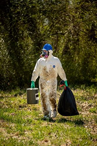 Tyvek coverall is composed of flash spun high density polyethylene which creates a unique, nonwoven material available only from DuPont. Tyvek provides an ideal balance of protection, durability and comfort of any limited use fabric technology. Tyvek fabric offers an inherent barrier to small size particles. Protection is built into the fabric itself; there are no films or laminates to abrade or wear away. Tyvek fabric's durability advantage over microporous film fabrics delivers consistently better barrier, even after wear and abrasion. Applications include: lead and asbestos abatement/remedation, general maintenance/operations, spray painting, general clean-up.