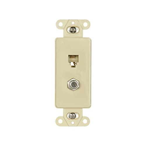 The Eaton 3562V Decorator Insert Combination Telephone Jack Coaxial Adapter is ideal for use with cable, satellite, TVs, DVDs and outdoor antennas. This device is 100-percent computer-tested for high quality and reliable performance. The flush mount jack is for use in Category 3 RJ11, RJ14 and RJ25 applications. This combination jack and adapter fits in a standard decorator wallplate opening and features a type F coaxial jack. This combination coax adapter and telephone jack comes in an ivory finish. Eaton offers innovative wiring solutions that increase productivity, energy efficiency and safety on the jobsite and at home. Their expansive offering includes code compliant devices for single and multi-family homes or residential development projects. Eaton has been a trusted name in electrical products for over 175-years and is headquartered in Peachtree, GA and has international manufacturing and distribution facilities.